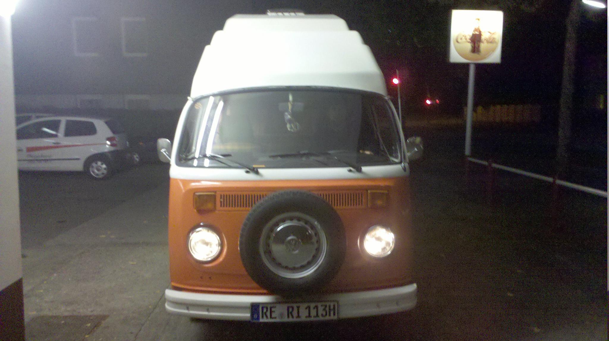 Also, wie du siehst/weiß, ist es ein Leuchtorangener T2b mit Reifen vorne, weißer Stoßstange und Hochdach. Fahrer hat meist ein schwarzes Cappy auf und die Beifahrerin hat dunkelbraune Haare (gerade zur Sicherheit noch mal nachgefragt, ich dachte "dunkelbraun" ist bestimmt nicht die richtige "Tonbezeichnung", ist sie aber