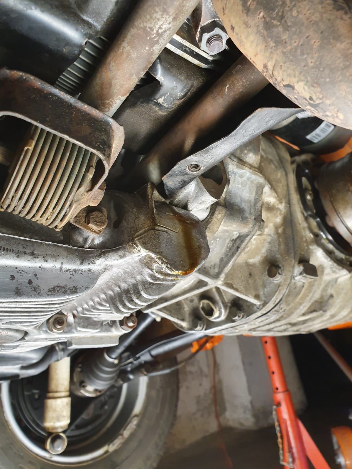 Aber leider war da die Bremstrommel im Weg und ich musste die beiden Bohrungen weiter hinten ansetzen.