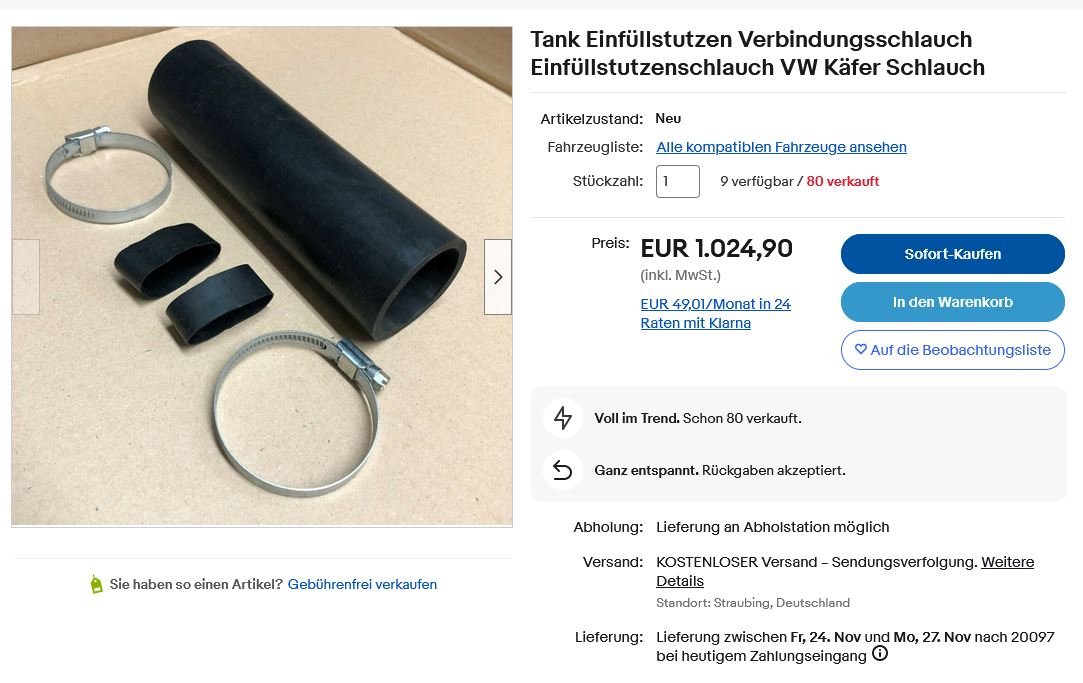 ...der Artikel muss ja "verfügbar" sein, mit verfügbar "0 Stück", kann man keine Anzeige auf ebay online halten!T2a/b Camper hat geschrieben: ↑23.11.2023 15:02 Warum steht denn da das noch 9 Stück verfügbar sind?