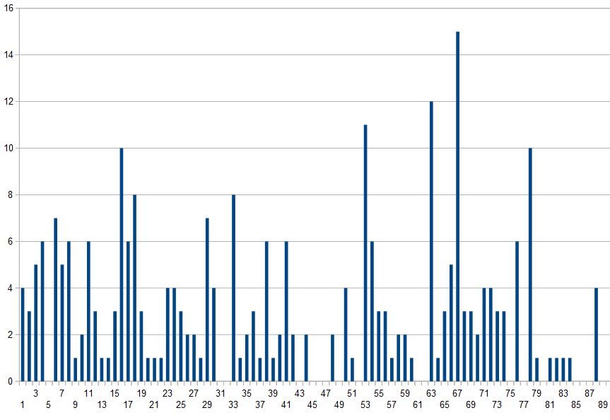 mir gefallen: 12, 16, 23, 30, 33, 36, 42, 53, 65, 70, 84 und 88.