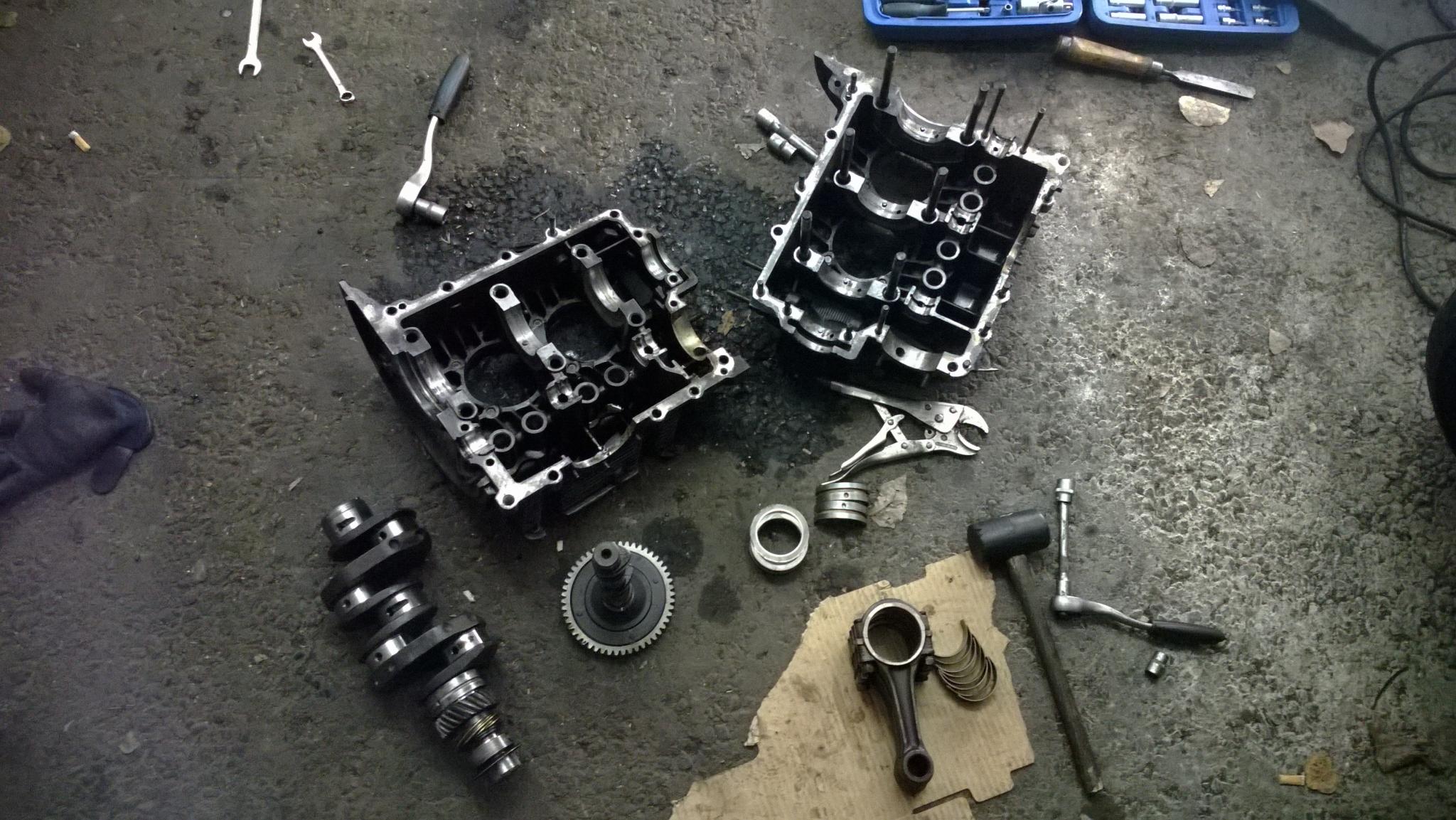 Motor zum Wiederaufbau gespalten und komplett zerlegt. Sieht soweit ganz brauchbar aus.