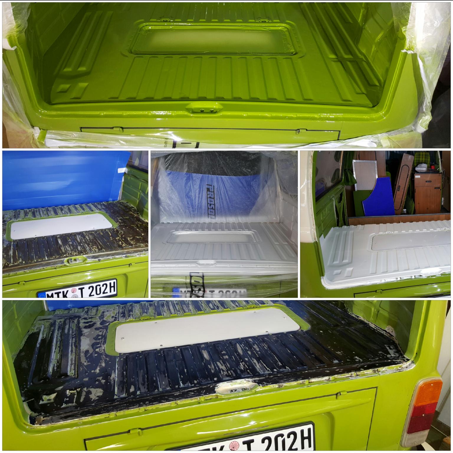 Endlich die Lackierung des Kofferraumbodens fertig gestellt: