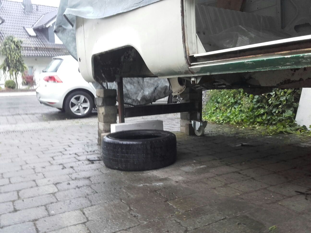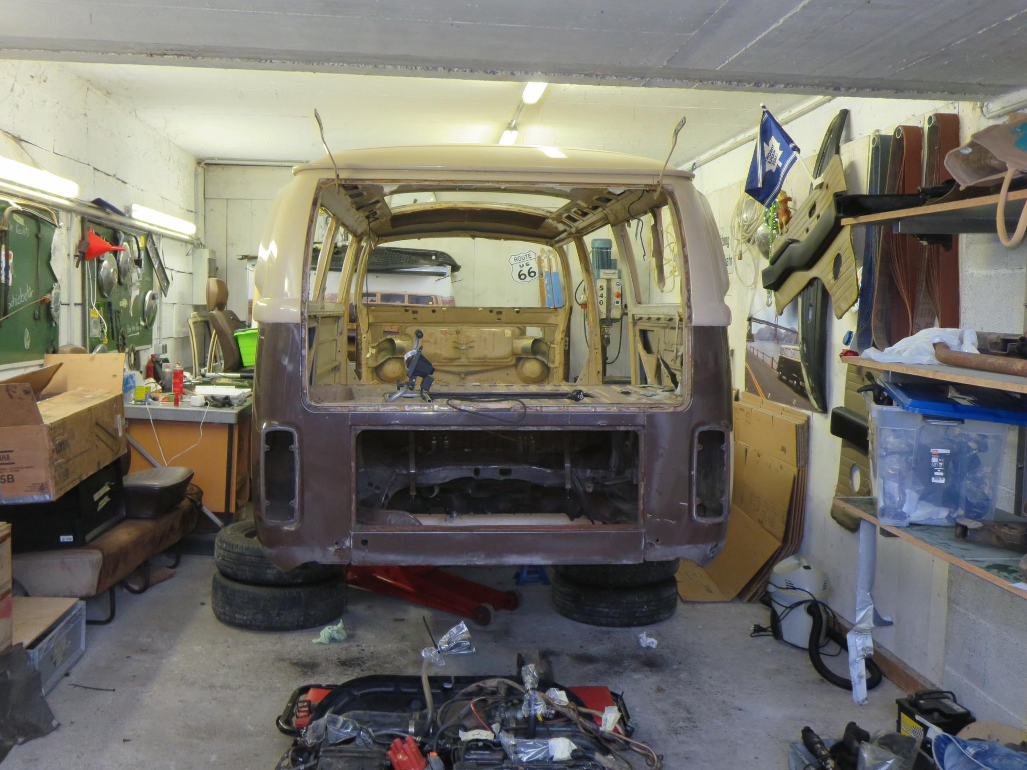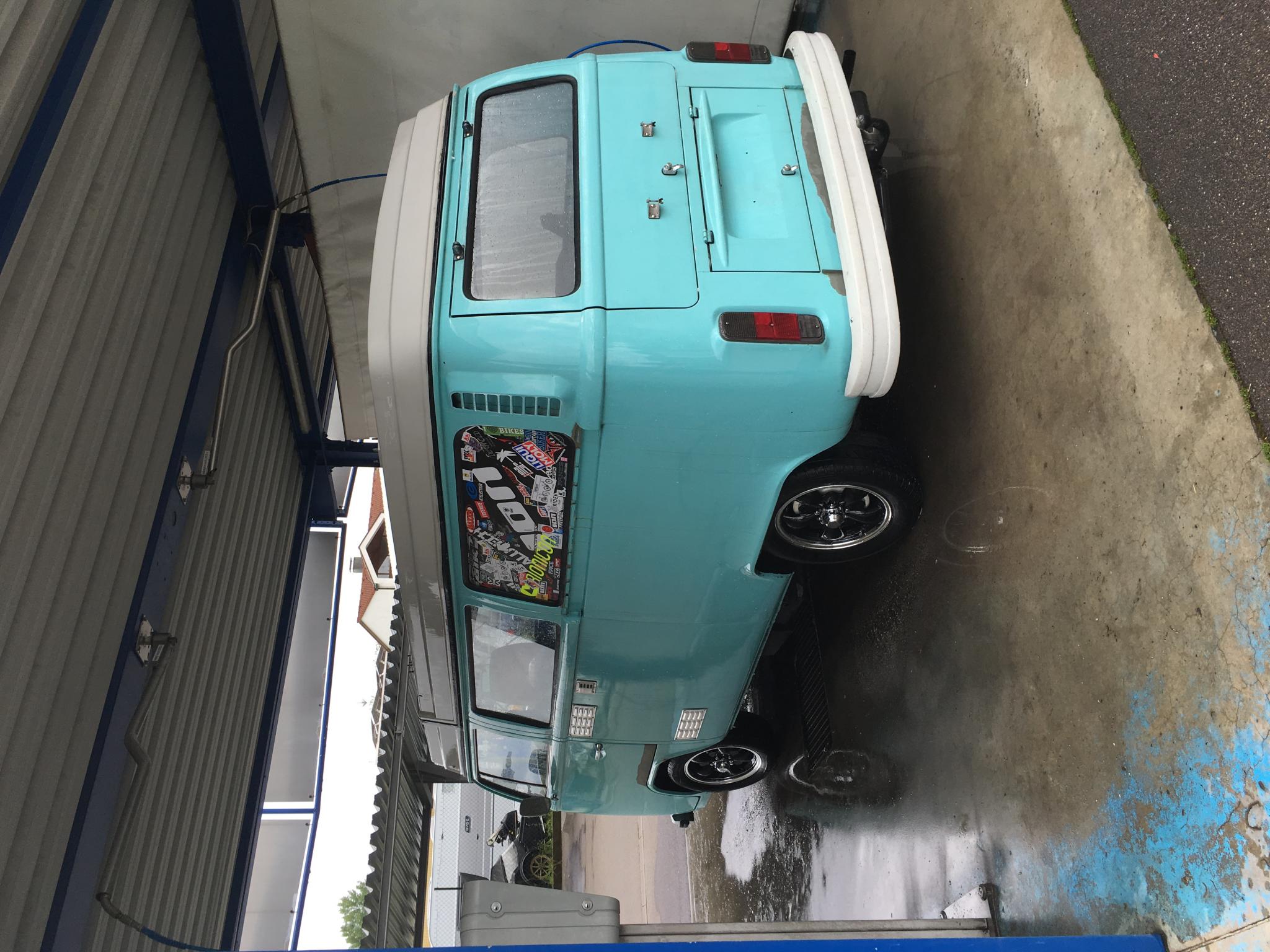 Mittwoch vorm Stammtisch noch eben mit Mo einmal unter und um den Bus gelaufen und das Fahrwerk und die Lenkung gecheckt, dabei den völlig verhärteten Lenkungsdämpfer erst mal rausgeschmissen und die rechte Spurstange entspannt, die war in sich komplett verdreht. Jetzt geht die Lenkung schon mal um einiges leichter.
