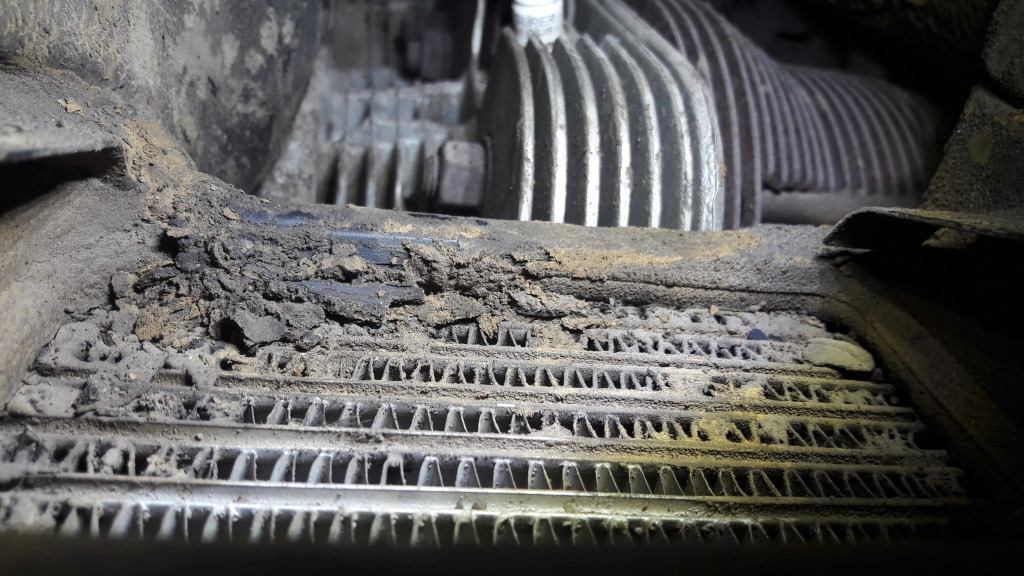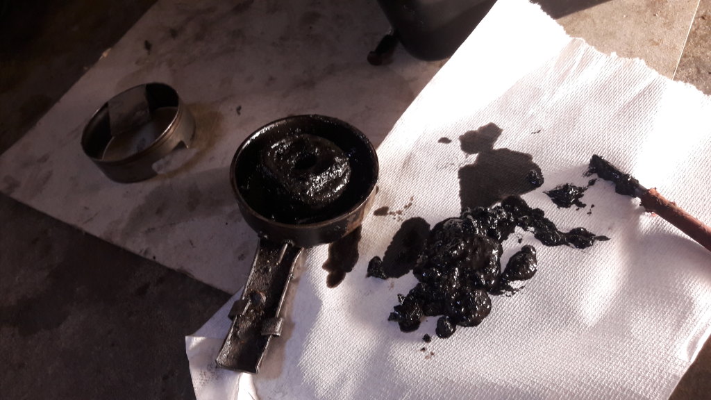 Bei der Motorheizung hat sich ganz schön viel Ölschlamm gesammelt.