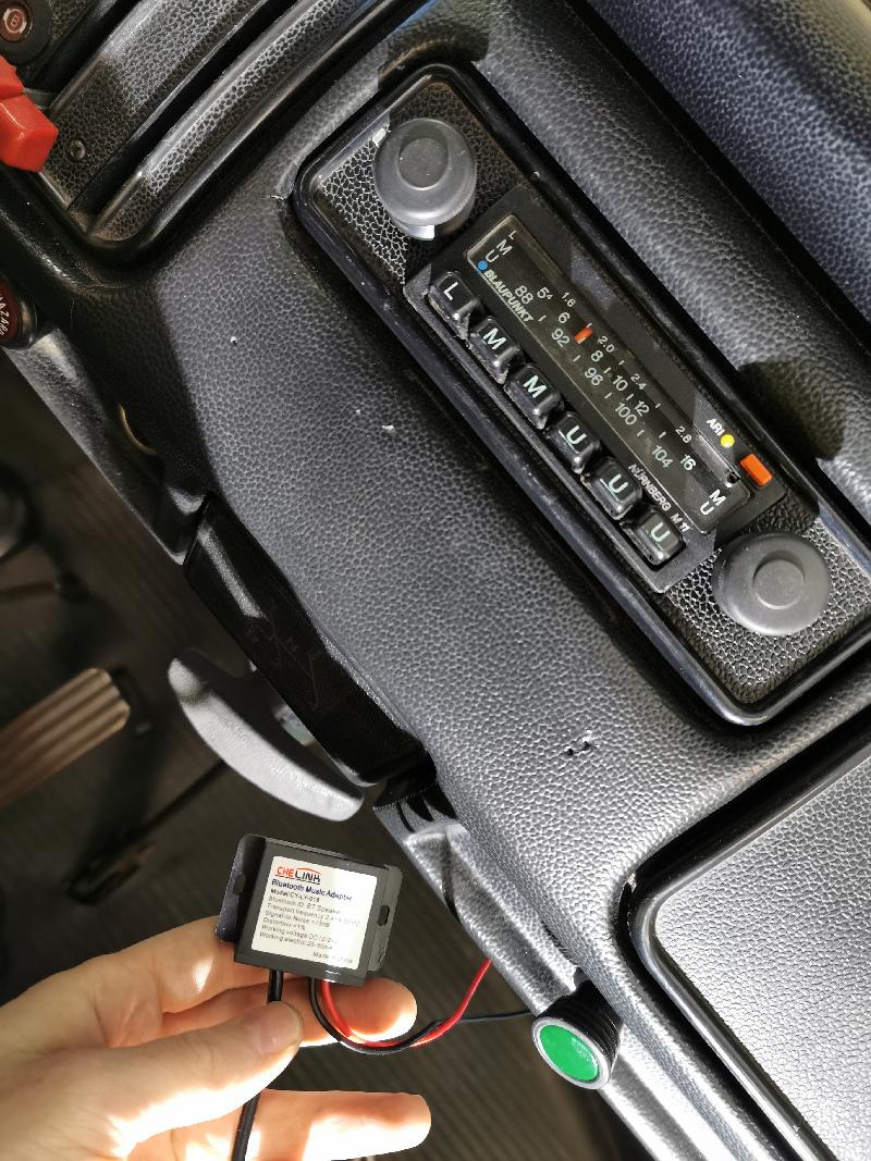 - Bluetooth Adapter eingebaut, welcher den AUX-Anschluss eines DIN-Buchsen-Adapters speist (somit wahlweise auch Radiobetrieb möglich)