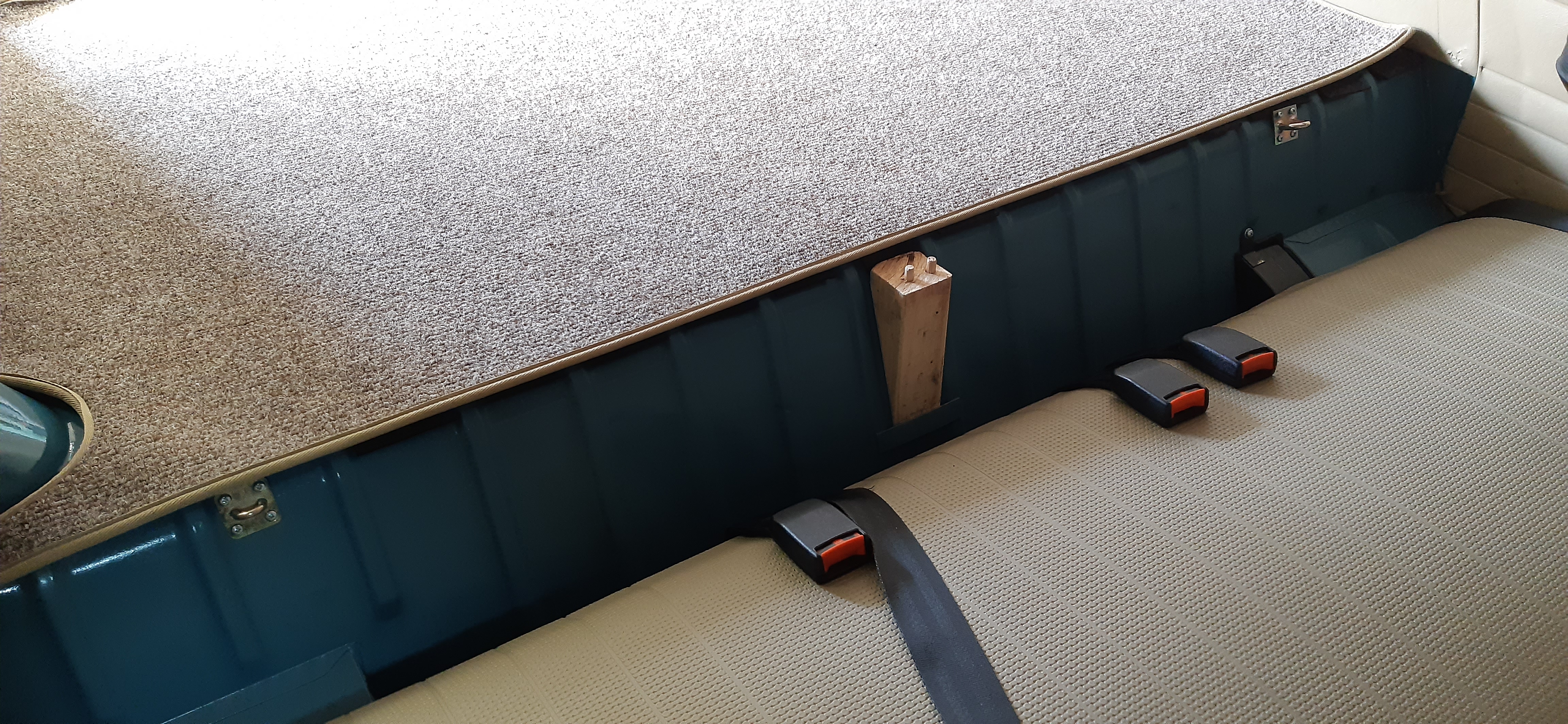 Zwei Sperrholplatten am Ende, wo sie auf der Lehne aufliegen zum Schutz mit Filz beklebt.