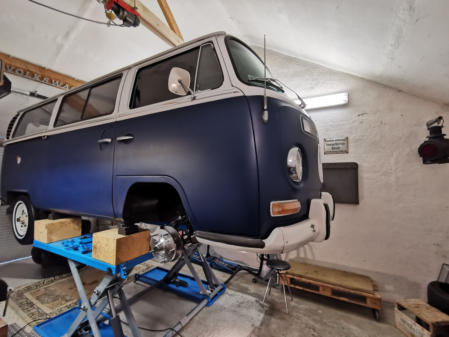 Außerdem hatte ich kurz vor Saisonende Zeit, um den Bus die lang ersehnte CSP-Bremse zu spendieren. Ich bin davor rumgefahren mit 112er Lochkreis vorne und 205er hinten. Jetzt ist es wieder so wie es gehört und rundum sind die originalen Felgen montiert :bier: