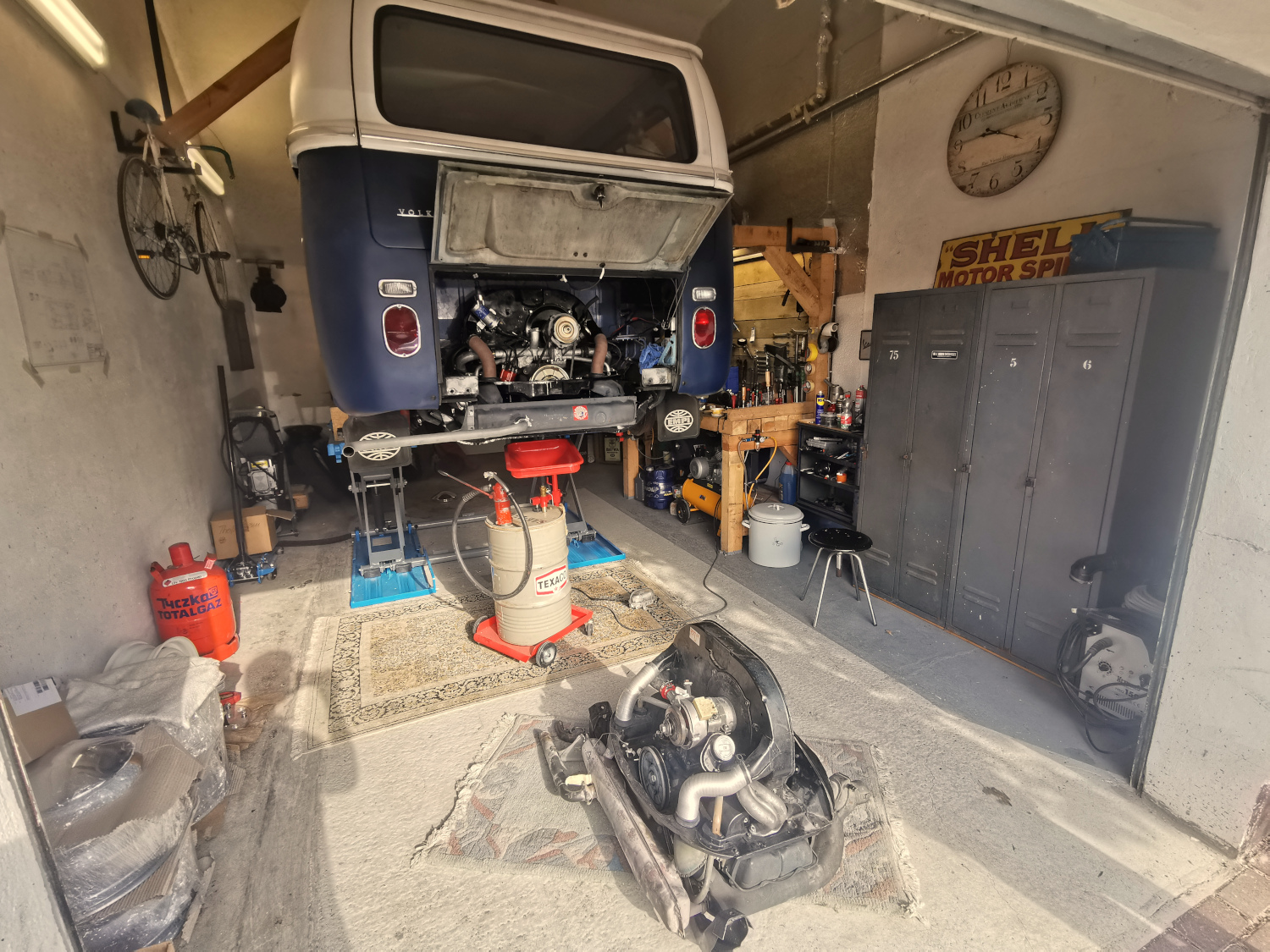 Es war auch immer eine längere Angelegenheit, bis man eine fahrbare Vergaser- und Zündverteilereinstellung gefunden hat. Der Motor von meinem Ami war einfach schlecht gemacht und nach 10 Jahren in meinem Einsatz auch ausgelutscht. Ein paar Tage bevor ich mit dem Bus ein Brautpaar zum Altar begleiten durfte gab es dann plötzlich massive Fehlzündungen und einen extrem unrunden Motorlauf. Da wir keine Zeit mehr hatten, um Fehlersuche zu betreiben, wurde der Motor kurz vor der Hochzeitsfeier über Nacht gewechselt. Und ich muss sagen ich bereue, dass ich ihn nicht schon früher getauscht habe. Der Bus fährt sich (mit etwas Übertreibung) wie ein Neuwagen und ist viel leiser. Man hatte sich über die Jahre an den lauten ruckeligen Motor gewöhnt - erst jetzt merkt man den Unterschied.