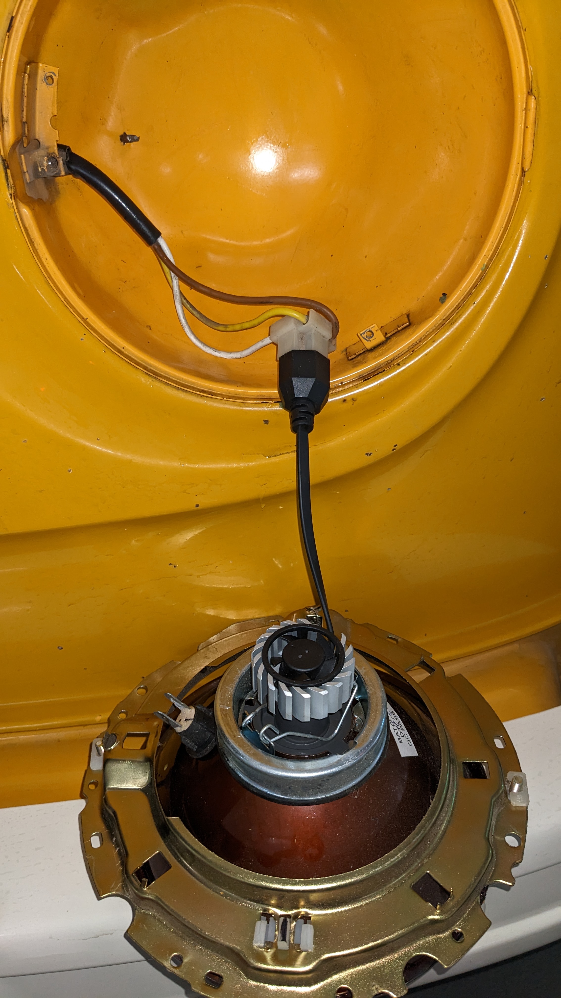 Zuerst hatte ich mir Sorgen wegen der Größe gemacht. Durch das flexible Anschlusskabel passt aber alles. Bei eingeschaltetem Licht (Motor aus) sind die am Kühlkörper montierten Lüfter leicht zu höhren, stört aber nicht. Die LEDs bleiben erstmal drin 8)