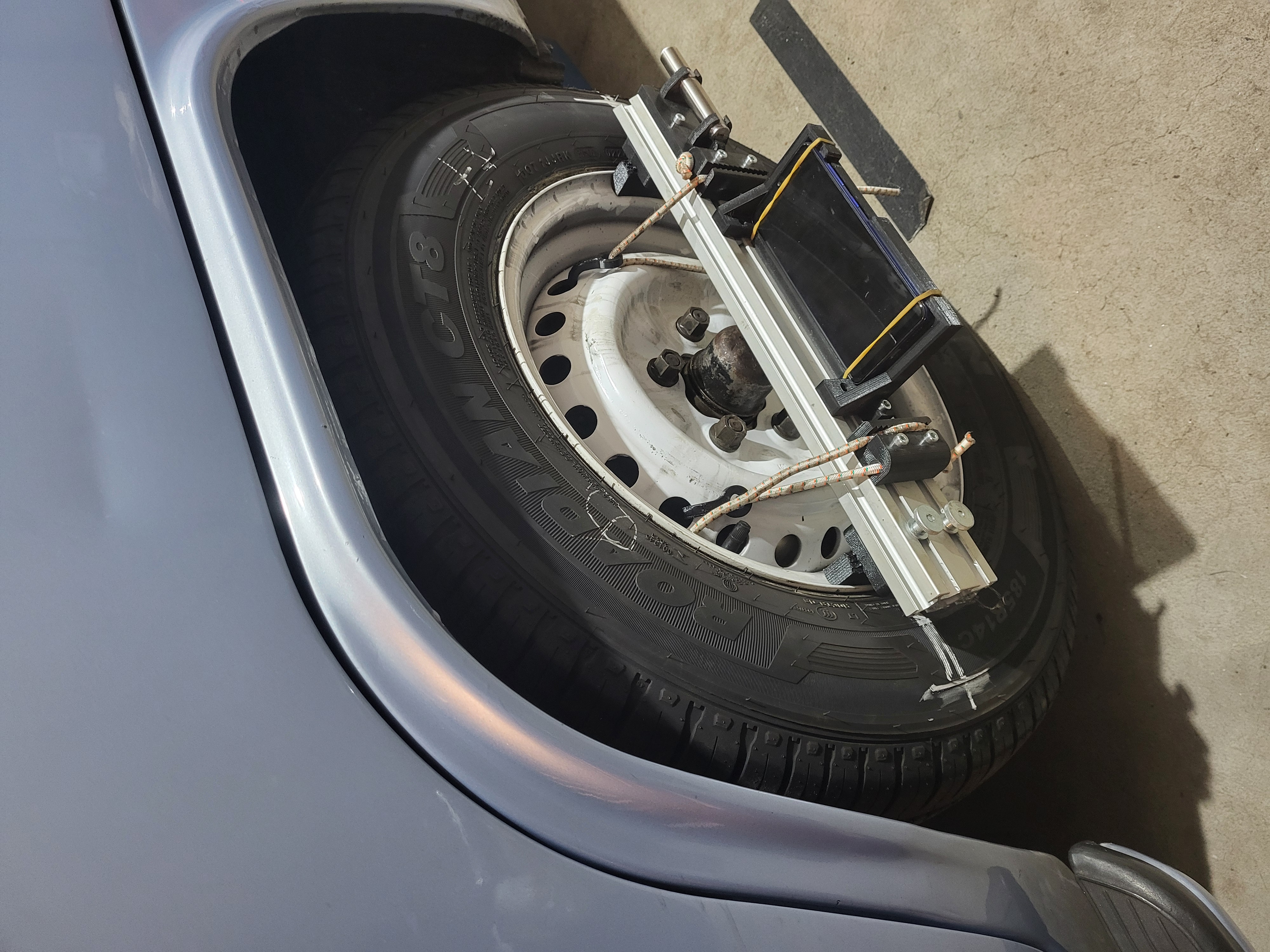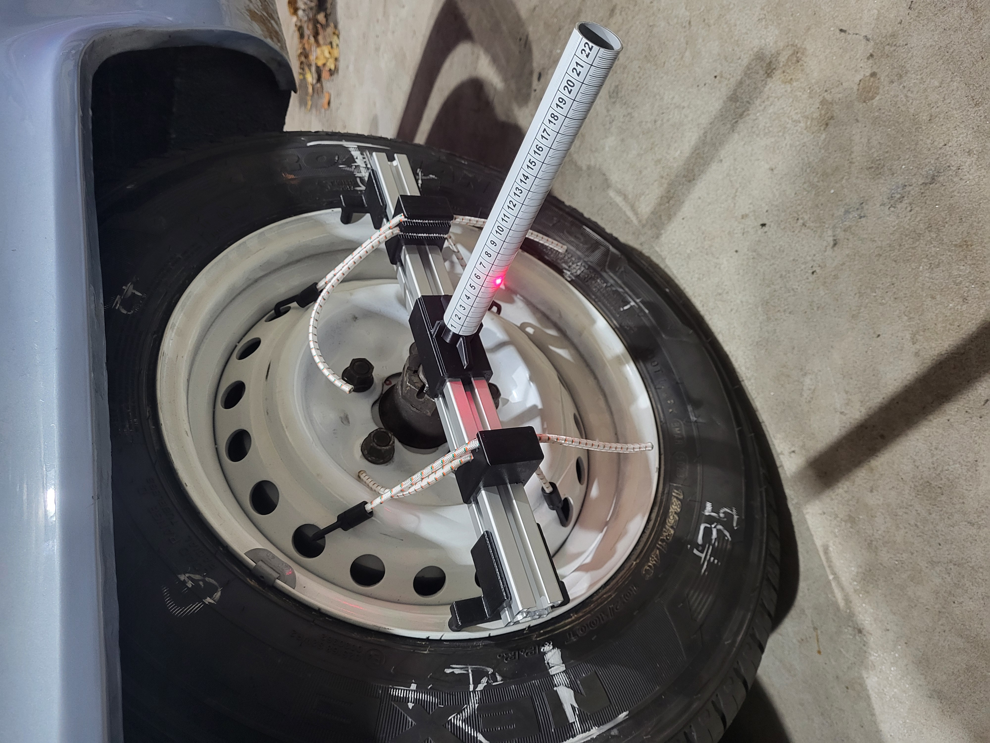 Dann noch Spur und Sturz neu eingestellt, mit Trackace und selbstgebauter lasergestützter Anlage für Sturz und Ausrichtung der Achsen zueinander.