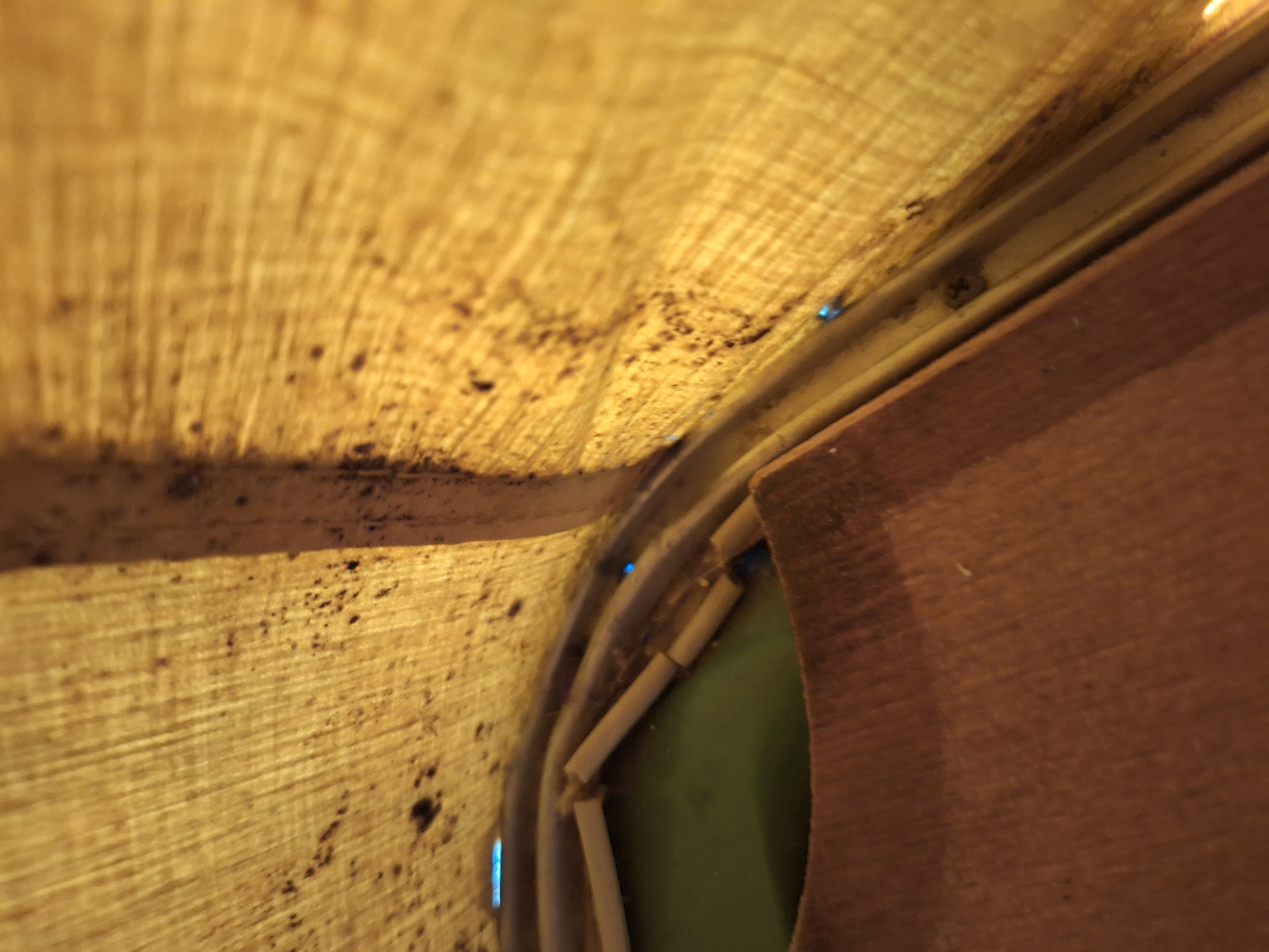 das Fenster war schon beim Kauf drin. Von außen ist in der Vertiefung augenscheinlich mit GFK aufgefüttert worden. Von innen ist der Halterahmen entsprechend der Rippe einfach ausgesägt und das Ganze großzügig mit Silikon o.Ä. abgedichtet. Es war wohl vorher mal ein größerer Rahmen verbaut. Man sieht noch die "eckigen" Abdrücke und die Reste von Kleber / Dichtmittel. Aber bisher ist das Fenster am Rahmen dicht, daher fasse ich das nicht an.