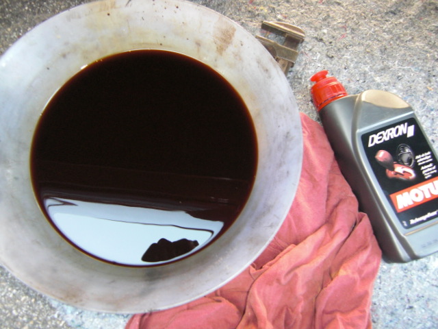 Das Automatikgetriebeöl gewechselt. Da der Deckel am Getriebe seltenerweise dicht ist, habe ich das Öl lediglich an dem Peilstabrohr abgelassen (2,5 Liter).