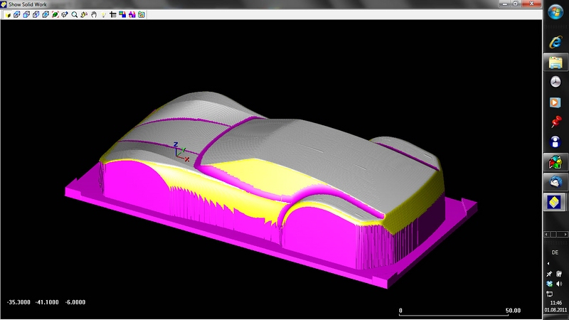 Bis zur breitesten Stelle - also zum Gürtel herunter - könnte man also nen Bus fräsen. Ab da geht es dann aber eben nur noch senkrecht runter.