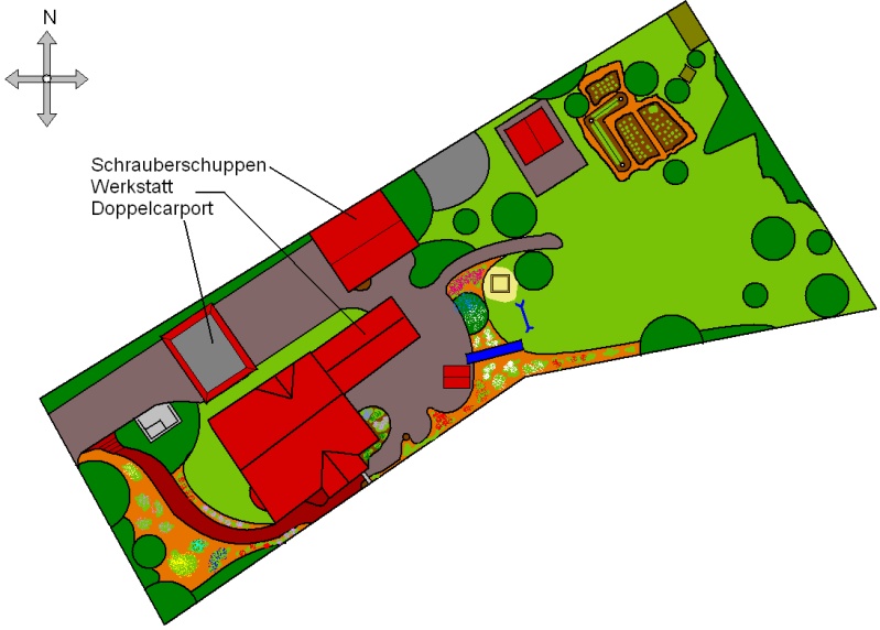 In den nächsten 1-2 Jahren möchte ich mir einen neuen Schrauberschuppen bauen, da ich derzeit nur eine alte Eternit-Doppelgrage (5,3x6,5m) habe.