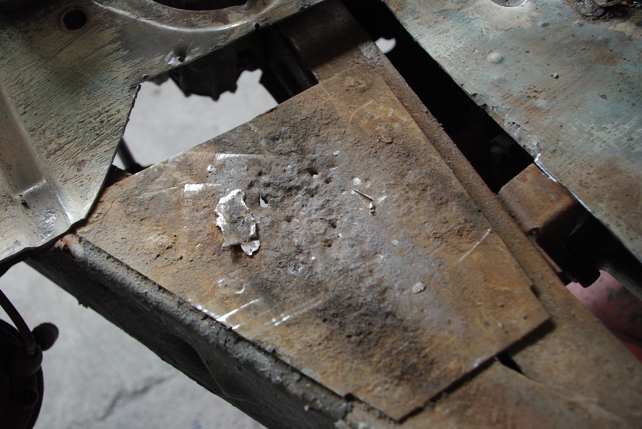da ich nun schon ein paar Bullis das Problem hatte, dass der Fahrerhausboden über den Y-Träger durchgerostet war, und das Deckblech darunter sehr stark narbig ist,