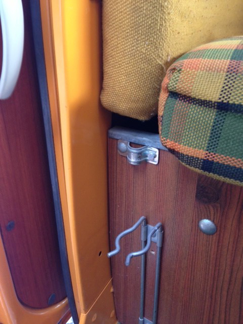 Nein der Bus ist nicht von Übersee. Und die beiden Halter (neben Schrank und am Sitz) sind nicht parallel, sonst hätte ich auch auf etwas getippt was man einhängen kann.