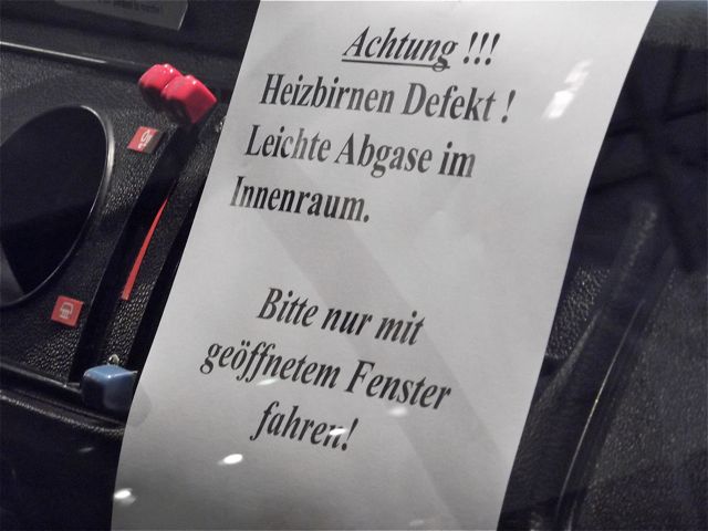 Ich zeige euch nur mal 2 Exemplare mit Preisvorstellung des Händlers. Der weisse T2 b (Bj.72) soll allen Ernstes 39.800 Euro kosten, obwohl er nicht besser aussieht als mein PeaceBulli. Und am Lenker prangt ein Schild, daß es im Wageninneren nach Benzin riecht, weil die Heinzbirnen kaputt sind. Na prima !