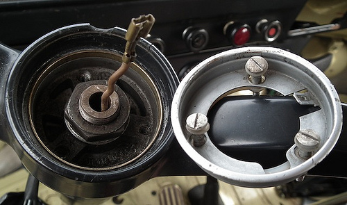 ... da hat man schließlich vor Verzweiflung einen externen Hupenknopf am Armaturenbrett montiert.
