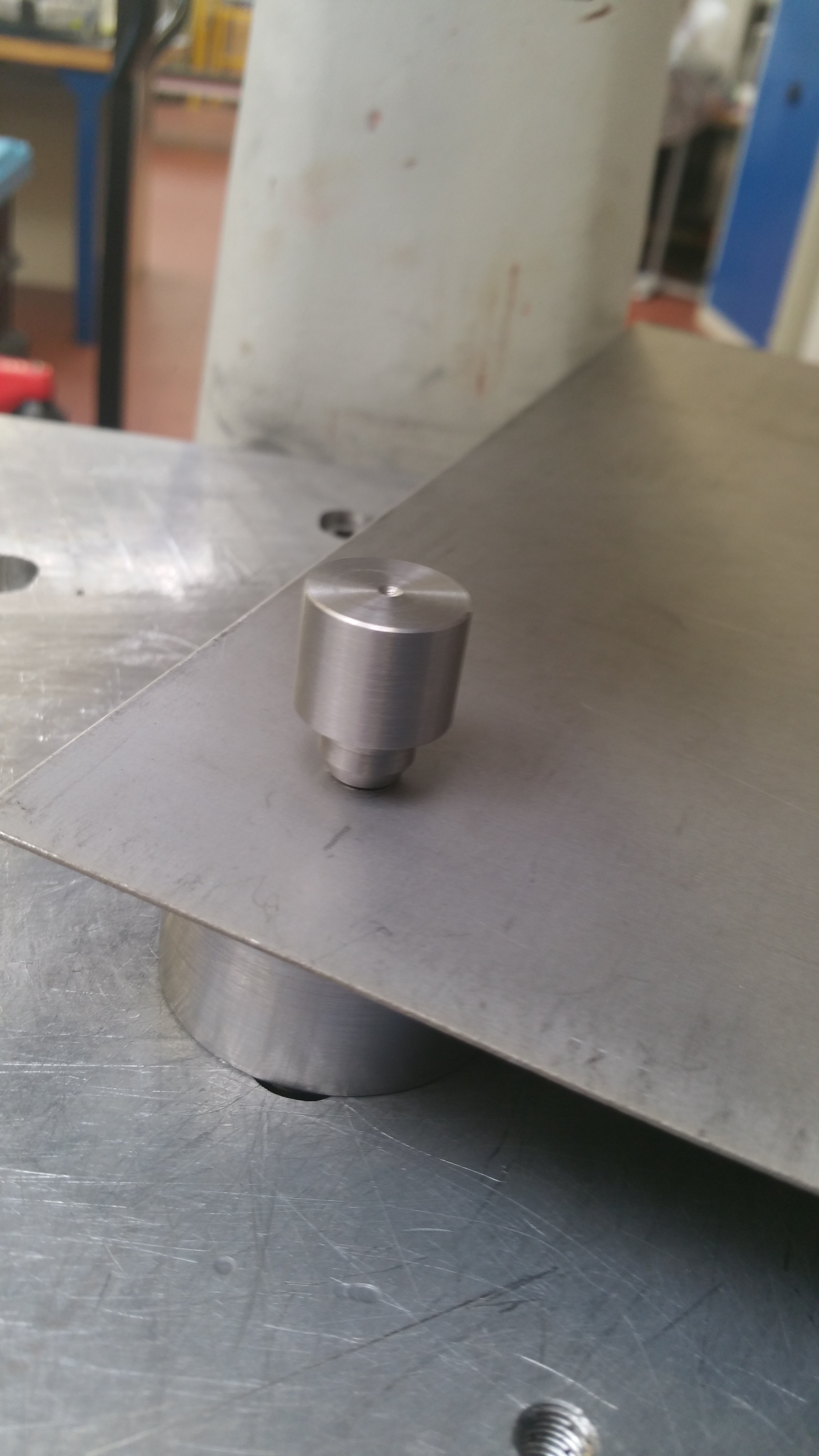 - Blech dazwischen legen und den Stift in die Passung stecken.