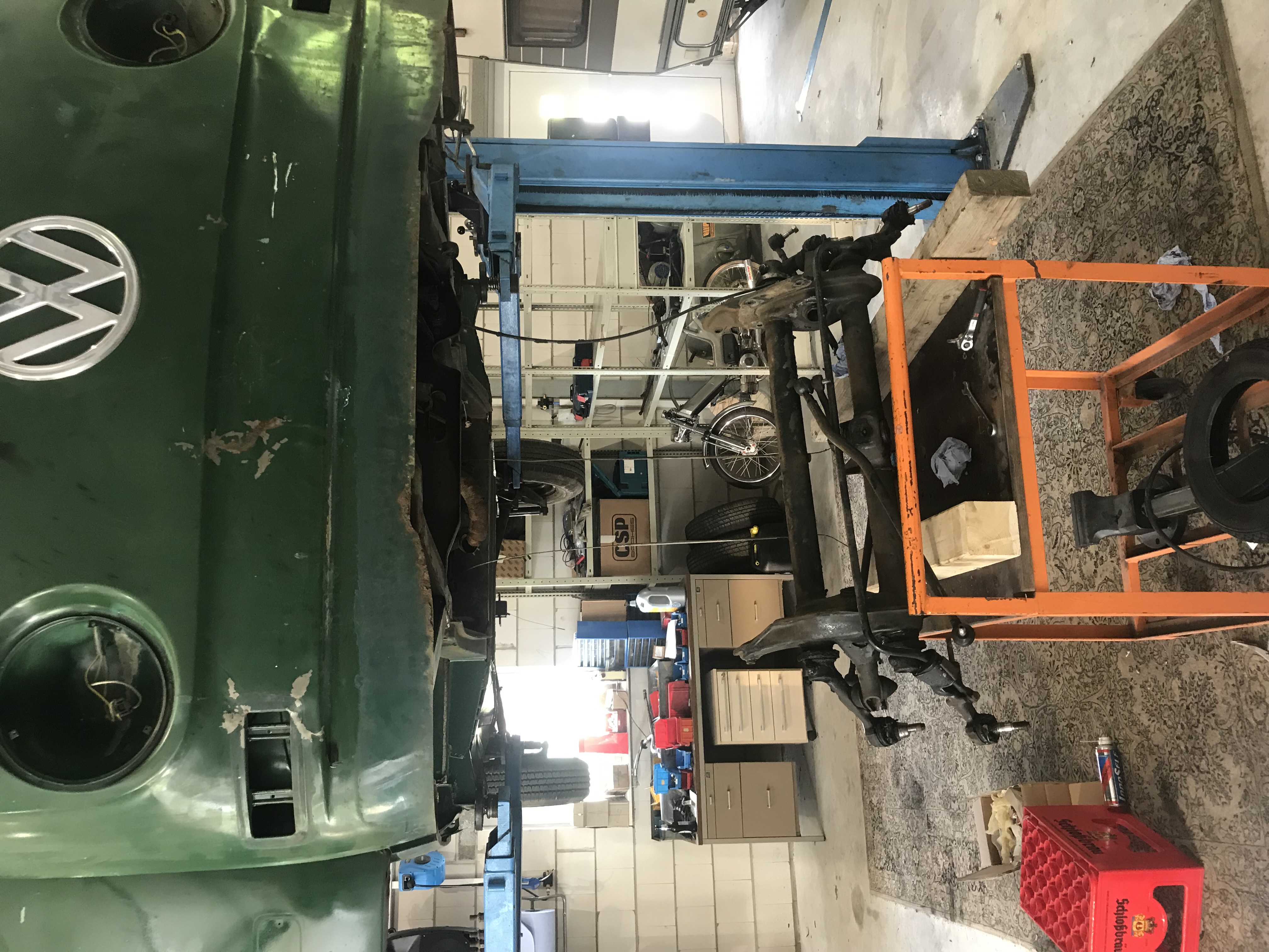 Sooooo, nach jeder Menge anderer Projekte, hab ich mir vorgenommen den Bulli jetzt mal endlich voranzutreiben. Bisschen was hat sich auch in der Zeit getan. Achsteile neu lackiert, Gelenke neu, auf Scheibenbremse umgebaut, Bremsleitungen, Bremskraftverstärker usw. neu, Kleinigkeiten wie Scheibenrahmen geschweißt und jetzt angefangen oberhalb neu zu lackieren. Der Lack war leider zu schlecht um ihn irgendwie zu retten. Zumindest nicht im Rahmen meiner Möglichkeiten. Wenn alles klappt kann ich nächste Woche Wolkenweiss lackieren, dann kann ich mich an den Innenraum machen. Ich hau mal ein paar Fotos rein.