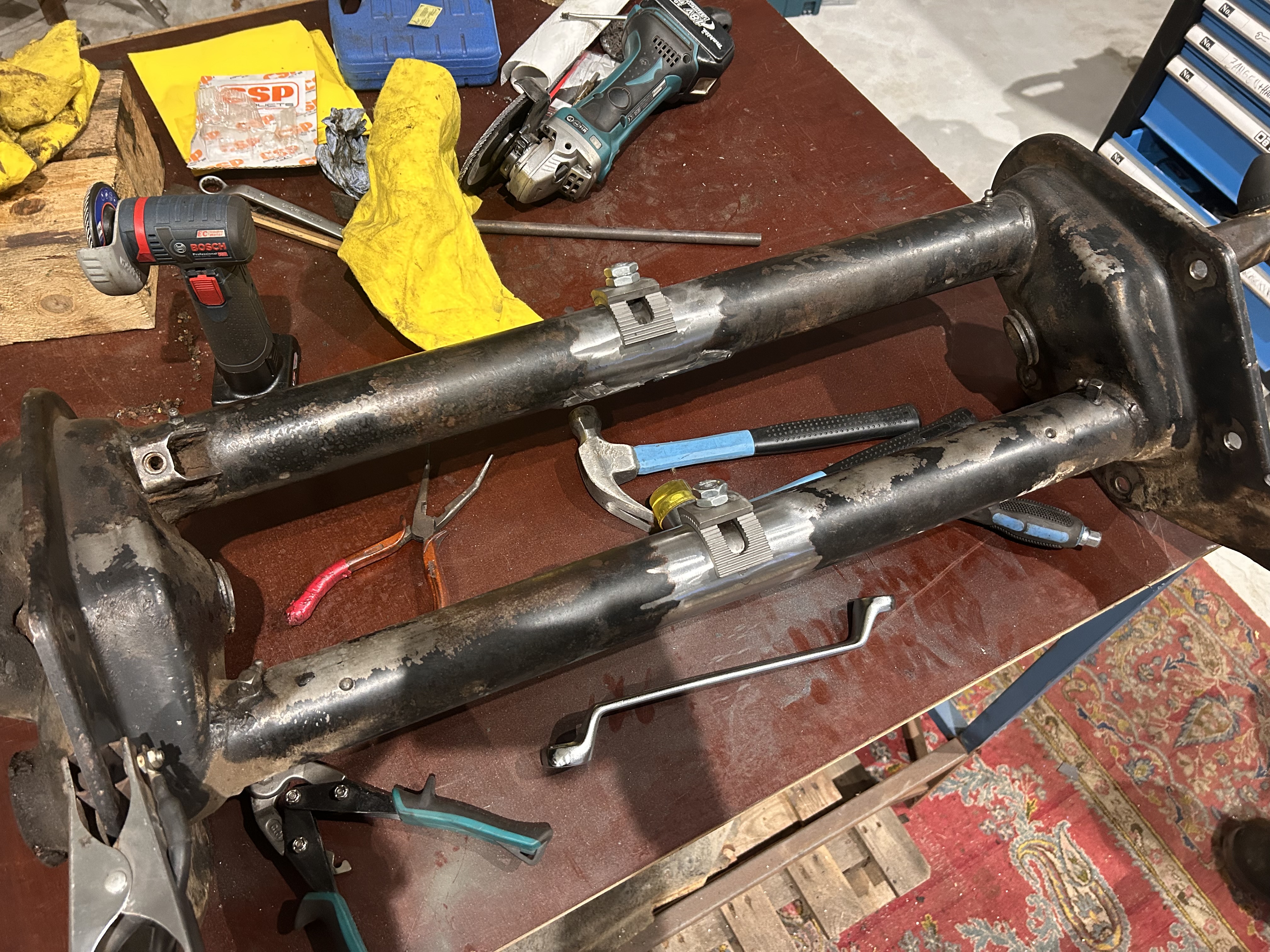 Moinsen, kurzer Statusbericht. Der Bus ist grad von Eisstrahlen wieder da. Das ist schon ne geile Nummer, viel Geld, aber ich bin froh, dass ich es gemacht habe. Jetzt alle Achsteile ab, Pulvern, überholen, Fußraum bekommt ein neues Blech, dann gehts fein voran.