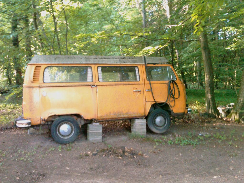 Also, Sachlage ist die, dass ich durch unglückliche Umstände nun im Besitz eines T2b BJ1978 bin. Das gute Stück steht aber schätzungsweise seit 10 Jahren aufgebockt auf der Wiese hinterm Haus unter Bäumen. Der Zustand ist entsprechend bescheiden. Wie ihr euch denken könnt nagt der gemeine Lochfraß an allen Ecken und Enden.