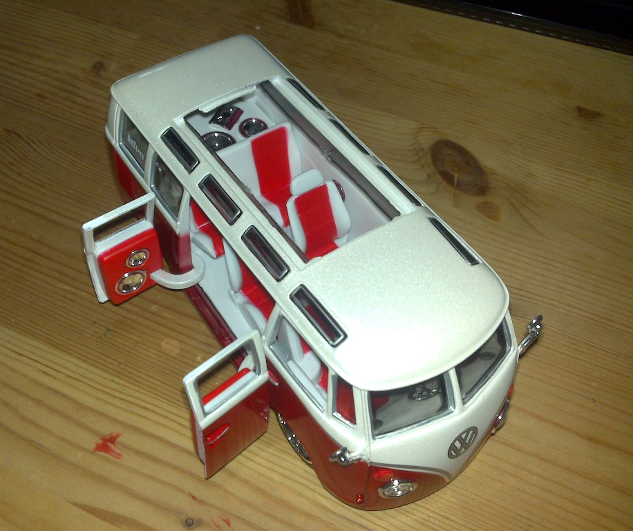 die haben einen T2a hergenommen, T2b Taigagrün lackiert, T2b Aufstelldach montiert und T2b Innenausstattung ab 76 in das Modell implantiert. Und schreiben dann noch "originalgetreu"