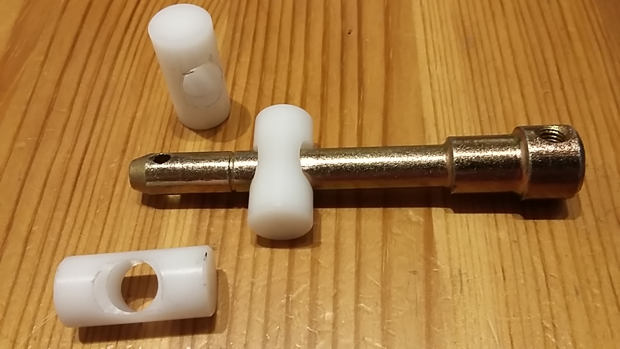 Das weiße Teil kommt in die Querstange des Gasgestänges.