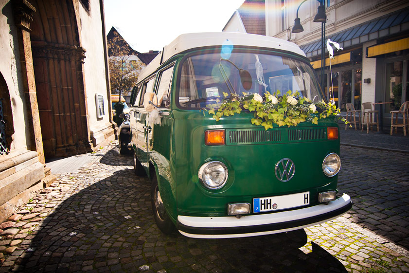 Unserer war jetzt auch Hochzeitsauto, ganz im Hippie-Style.