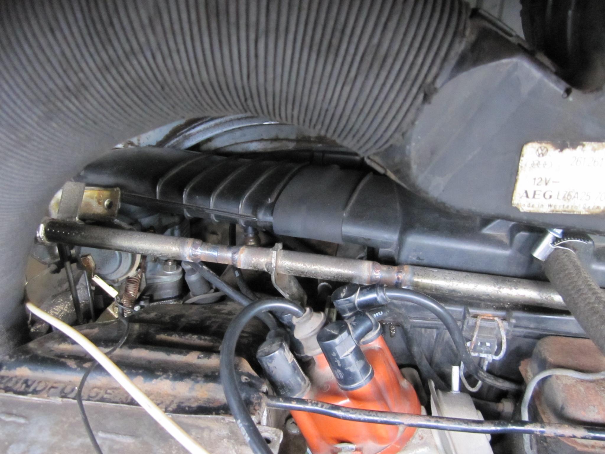 Die Montage war kein Problem. Die neuen angeschraubt und gut .Das zerschnittenen Gestänge eingebaut, angepasst und wider zusammen geschweißt. Probelauf. Sofort angesprungen. Er läuft deutlich besser, runder und nahm bessre Gas an als mit den alten Vergasern. Die Bedüsung ist vom 2L Porsche 914. Die Düsen wurden beim einstellen der Vergaser auf einem Leistungsprüfstand etwas aufgerieben, so das ein CO von 4% zustande kommt. Auf dem Leistungsprüfstand wurde eine Leistung von 42 kW an der Achse ermittelt was eine Motorleistung von 54,6 kW = 74,3 PS ergibt.