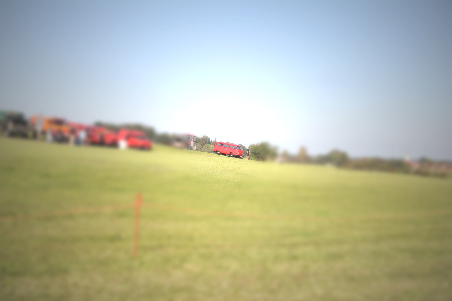 der blinkend und blitzende rote Feuerwehr-T2 im 1A Zustand kam mit dem Klaus