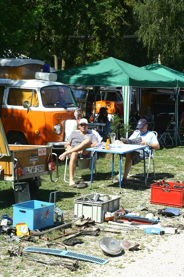 Es war alles versammelt - von den übergetünchten Ausstellungsstücken bis zu den eingesetzten Campern. "Mein Bulli ist nicht schön" ist eine echt nicht zugelassene Ausrede. Zumal Du mal gerade 1,5 Stunden (höchstens) vom Treffen entfernt wohnst - habe ich selber am Sonntag ausprobiert. Nach Nürnberg war ich keine Stunde auf einer 1a Bundesstaße unterwegs.