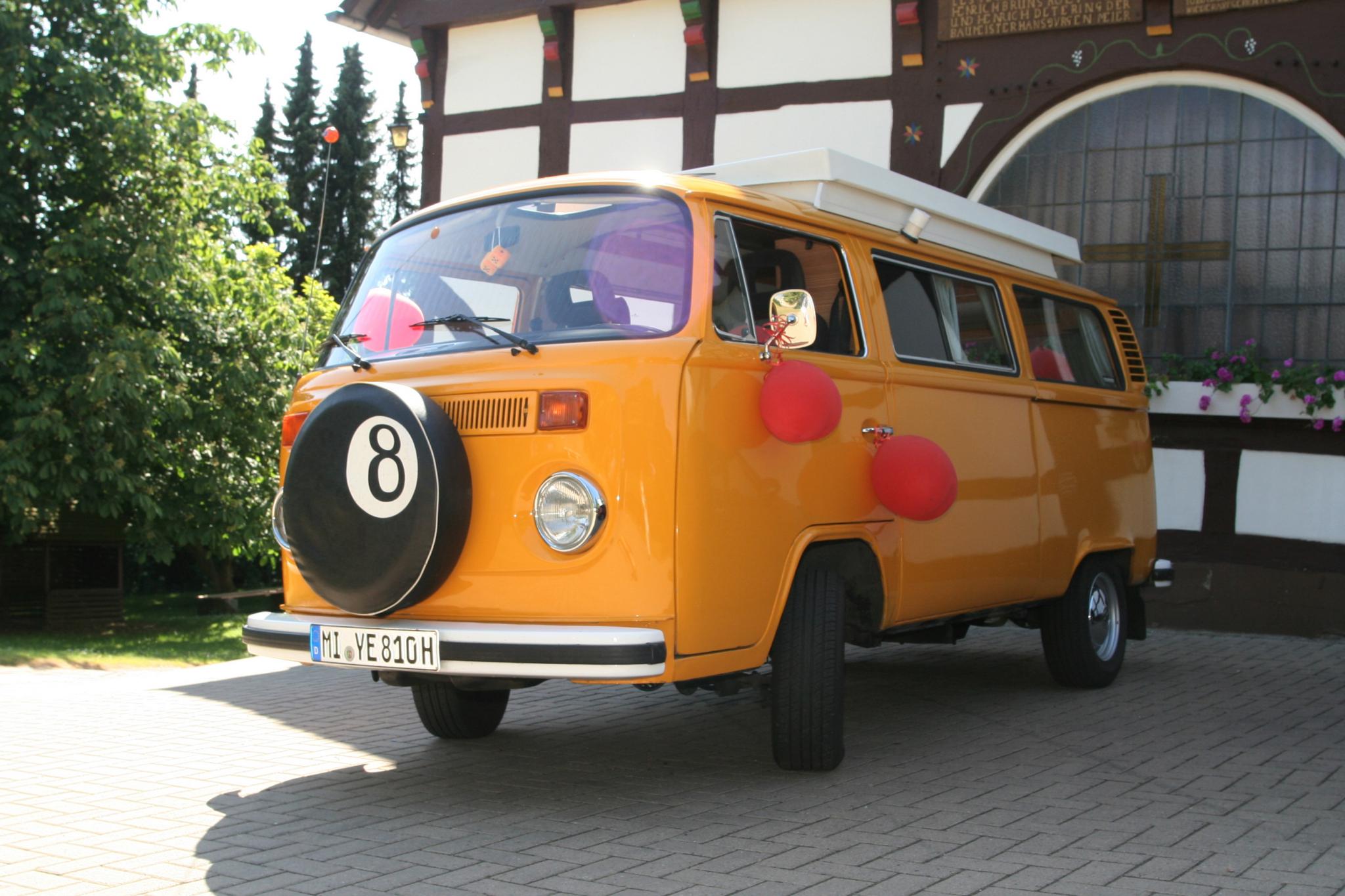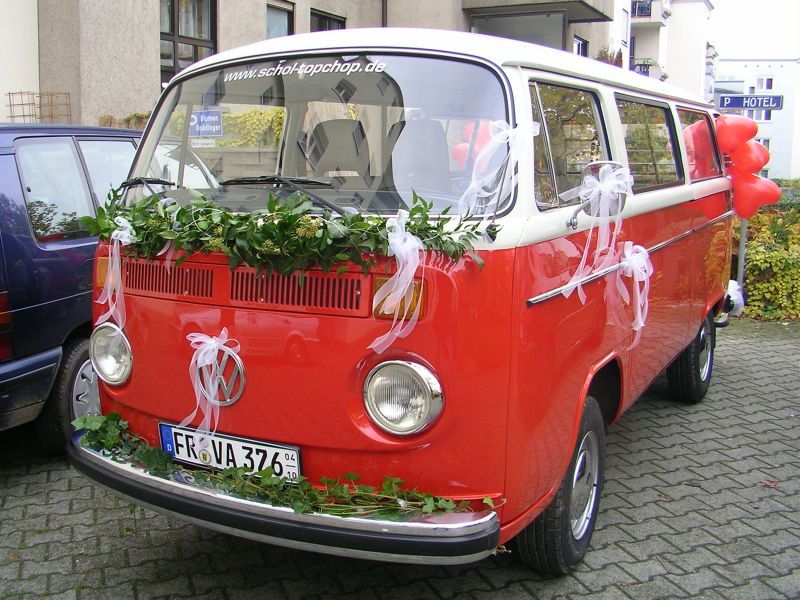 Unserer war jetzt auch Hochzeitsauto, ganz im Hippie-Style.