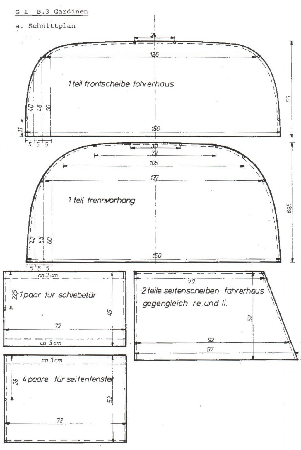 Könnte jemand bitte Fotos von halbwegs originalen Vorhängen machen? Wen möglich von allen unterschiedlichen (Fahrerhaus, seitenscheiben, heckscheibe).