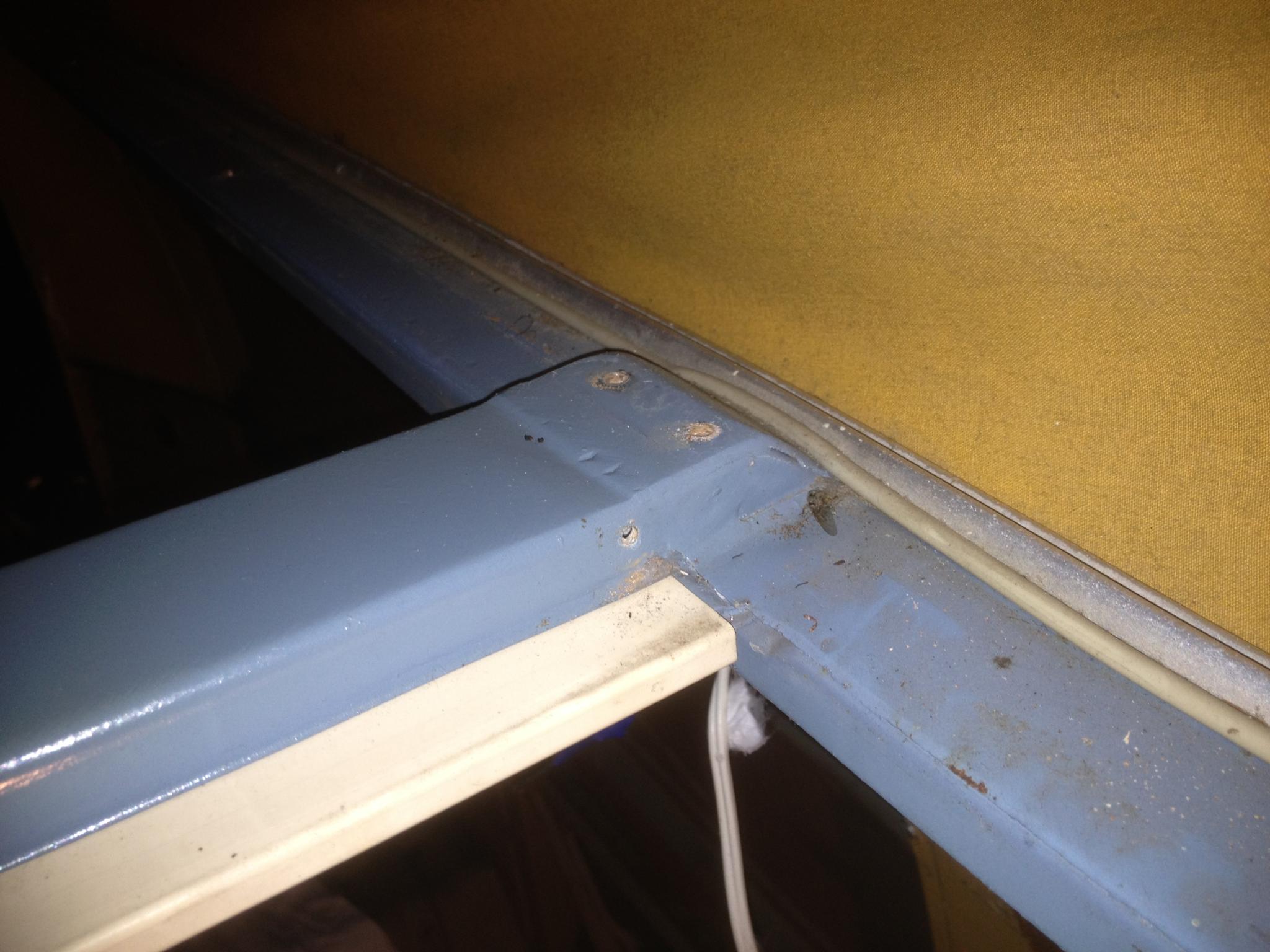 Ich nochmal, hier nochmal ein Bild von einer der vermoderten Aufnahmen der Scharniere. Keine Ahnung, was ich da machen soll...