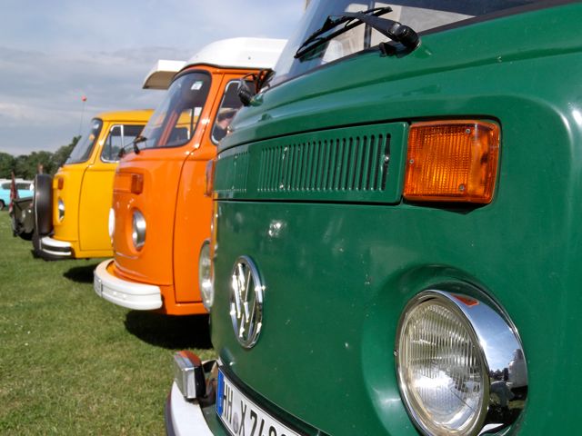 Auch am nächsten Morgen keine nennenswerte Wetterbesserung. Bedeckter Himmel, kalt und windig. Wir freuten uns zwar alle, in Bockhorn zu sein - aber das Gemeinsame mußte diesmal temperaturbedingt etwas kurz kommen. Bei dem Bummel über den Markt zeigte sich dann wieder der Charme dieses Treffens für mich: man trifft alte und neue Bekannte, mit denen man am Bulli schöne Zeiten verbringt. Zur "Abwechslung" dann mal etwas über den Markt schlendern und mal eben das Klapprad mit der 2-Gang-Schaltung erworben sowie erfreut festgestellt, daß die Oldtimer-Markt ihren besten Mann geschickt hat. Auf dem Markt schon immer wieder reger Austausch mit den sich immer wieder über den Weg laufenden Platznachbarn, wo man was gesehen hat und wo man unbedingt nochmal hin muß. "Ja - im Zelt steht der Dani*8, guckt Euch den mal an!"