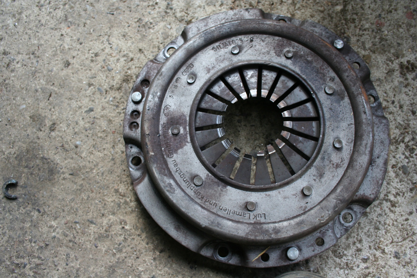 Da hat sich das gar so hungrige Ausrücklager in die Druckplatte gefressen. Allerdings hab ich beim fahren nichts gemerkt.