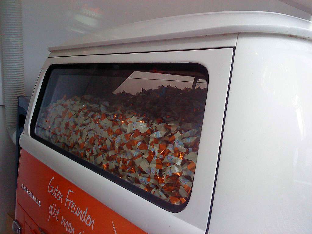 Kreisch, der sieht ja aus, wie meiner...und ich dachte die verlosen da ein edles Blechpralinee.Der_Schweizer hat geschrieben:Für den Gewinner sollte klar sein, das der Bulli spätestens in den nächsten 2 Jahren hinten dicke Backen bekommen wird