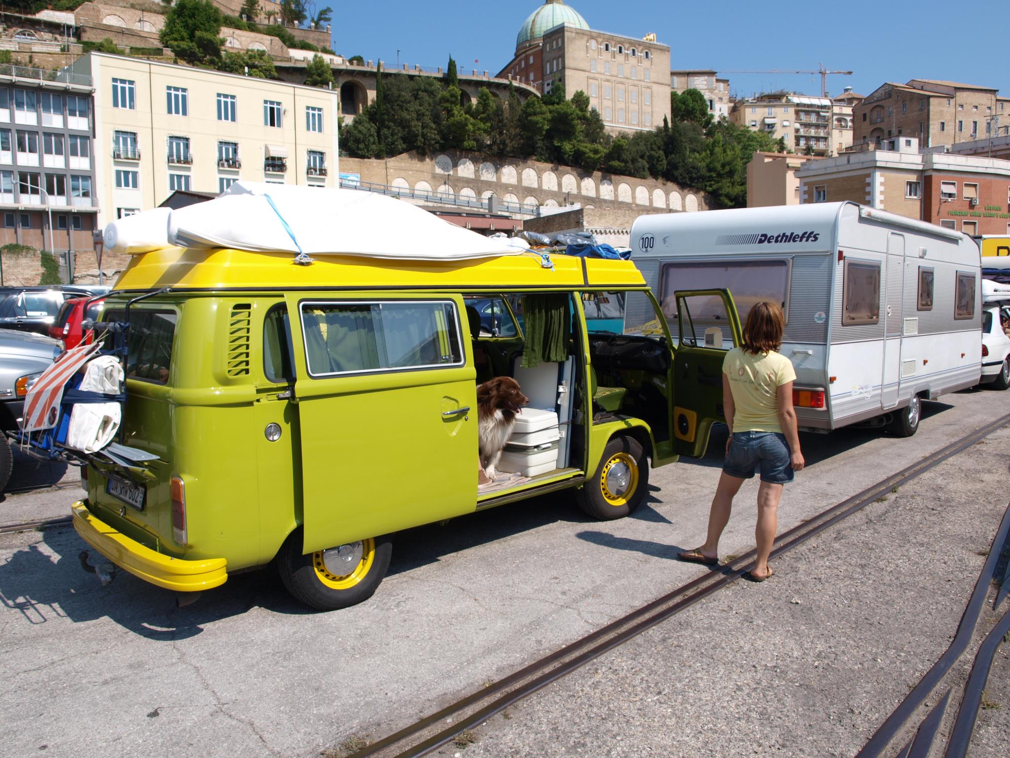 seit neuestem muss im fahrzeugbrief/schein das fahrzeug als camper ausgewiesen sein ansonsten bekommt man keinen campingstellplatz auf dem schiff also wenn man " nur eine T2b hat der aber als PKW Geschlossen im brief drinnstehn hat,hat gelitten es muss eingetragen sein!!!!