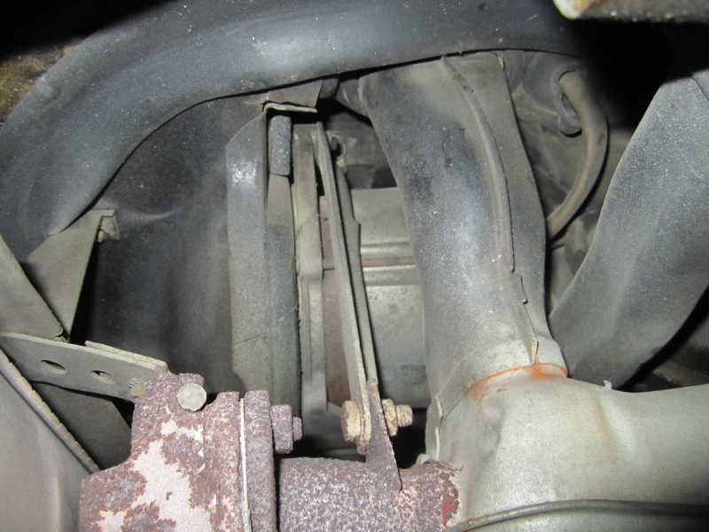 Hab an meinem Californien-Champagne (Anlage mit KAT und EGR) heute abend geschaut. Die dort dargestellte Lösung besteht nur aus der einen rechten Blechlasche vom Gebläsekasten zum Zweilochflansch hinunter - unter der oberen der beiden Muttern mit festgeschraubt.