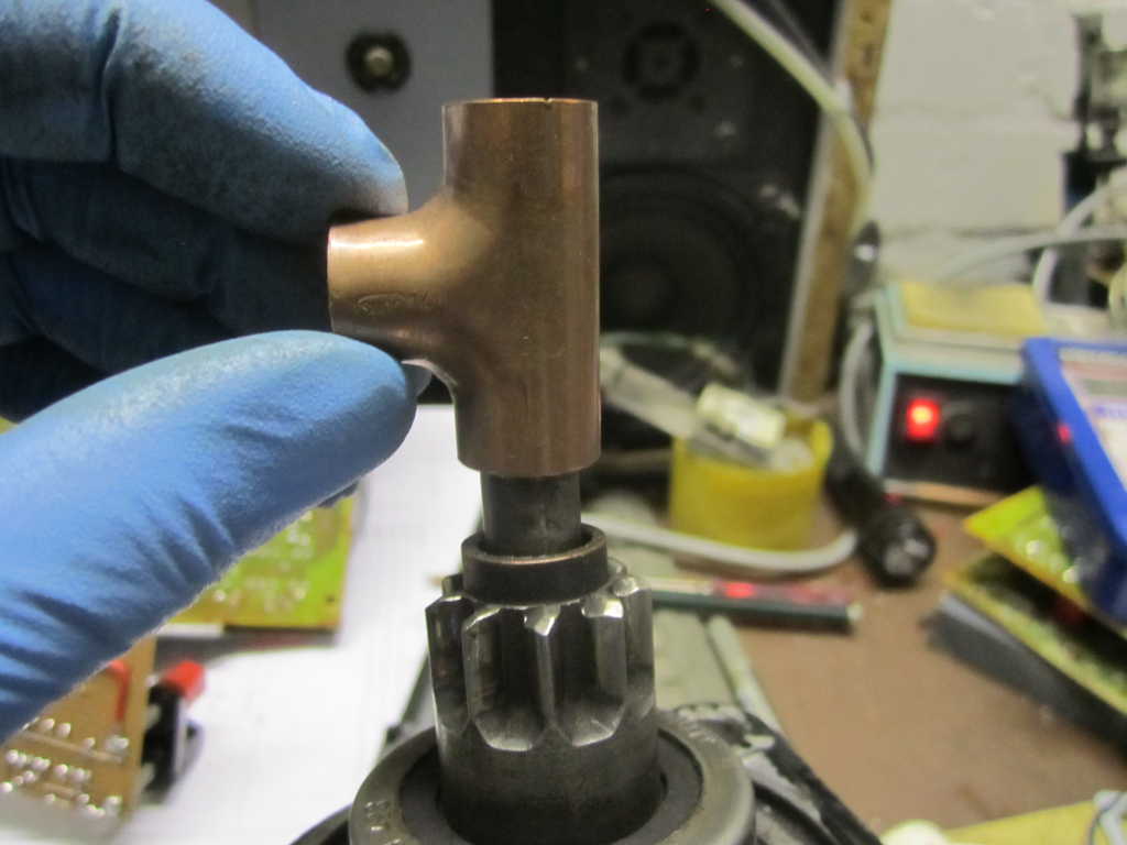 Dafür habe ich ein Kupferrohr über die Welle gestülpt und einmal mit dem Hammer drauf gehauen.