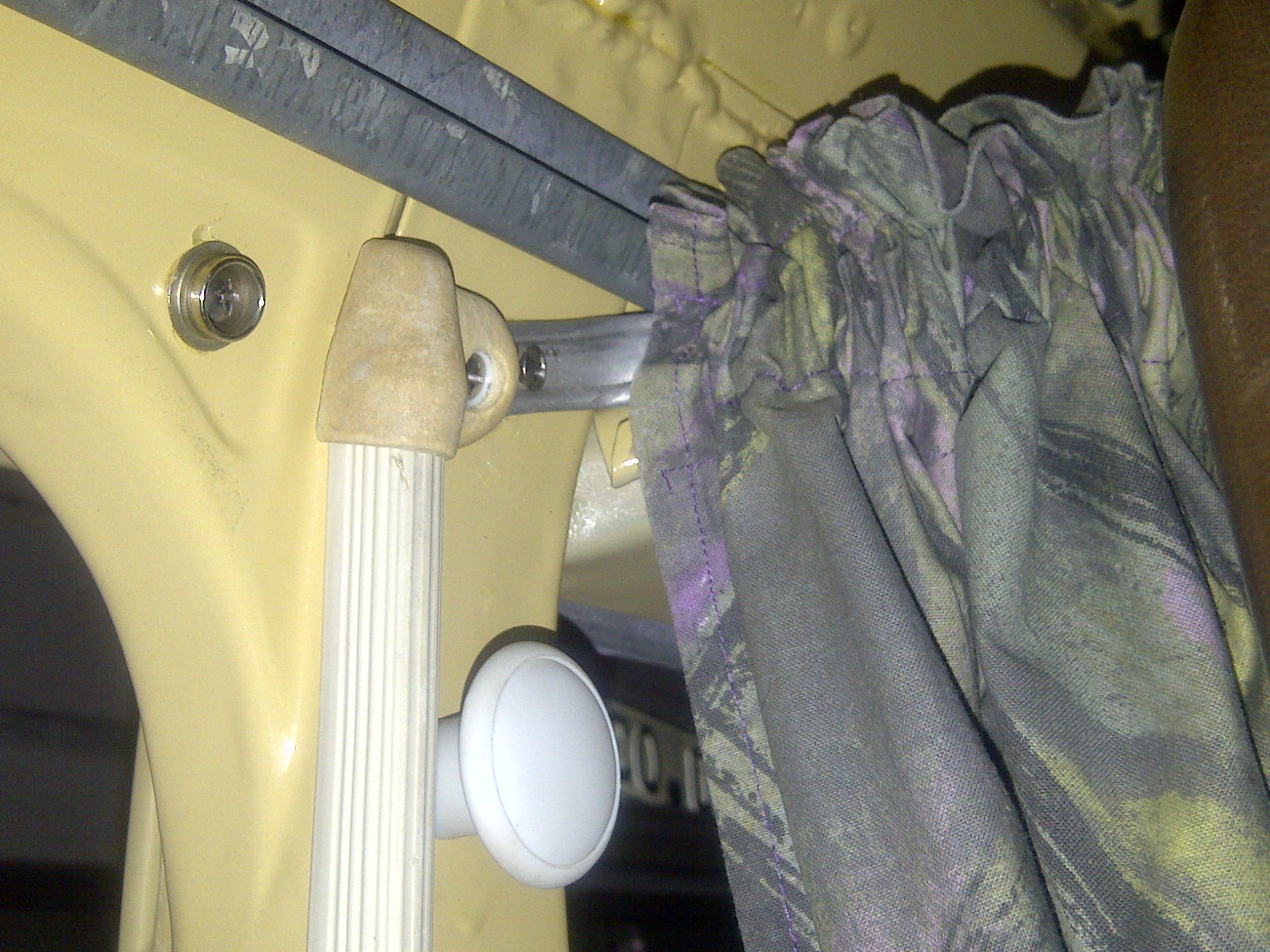 Über der Schiebetür hängt eine Aluminiumleiste. Am rechten Seitenfenster werden die Gardinen oben durch eine Aluleiste und unten durch den elastischen Draht gehalten. An der Heckklappe sind oben und unten Aluleisten verschraubt. An der Fahrerseite gibt es oben und unten je eine durchgehende Aluleisten und einen elastischen Draht.