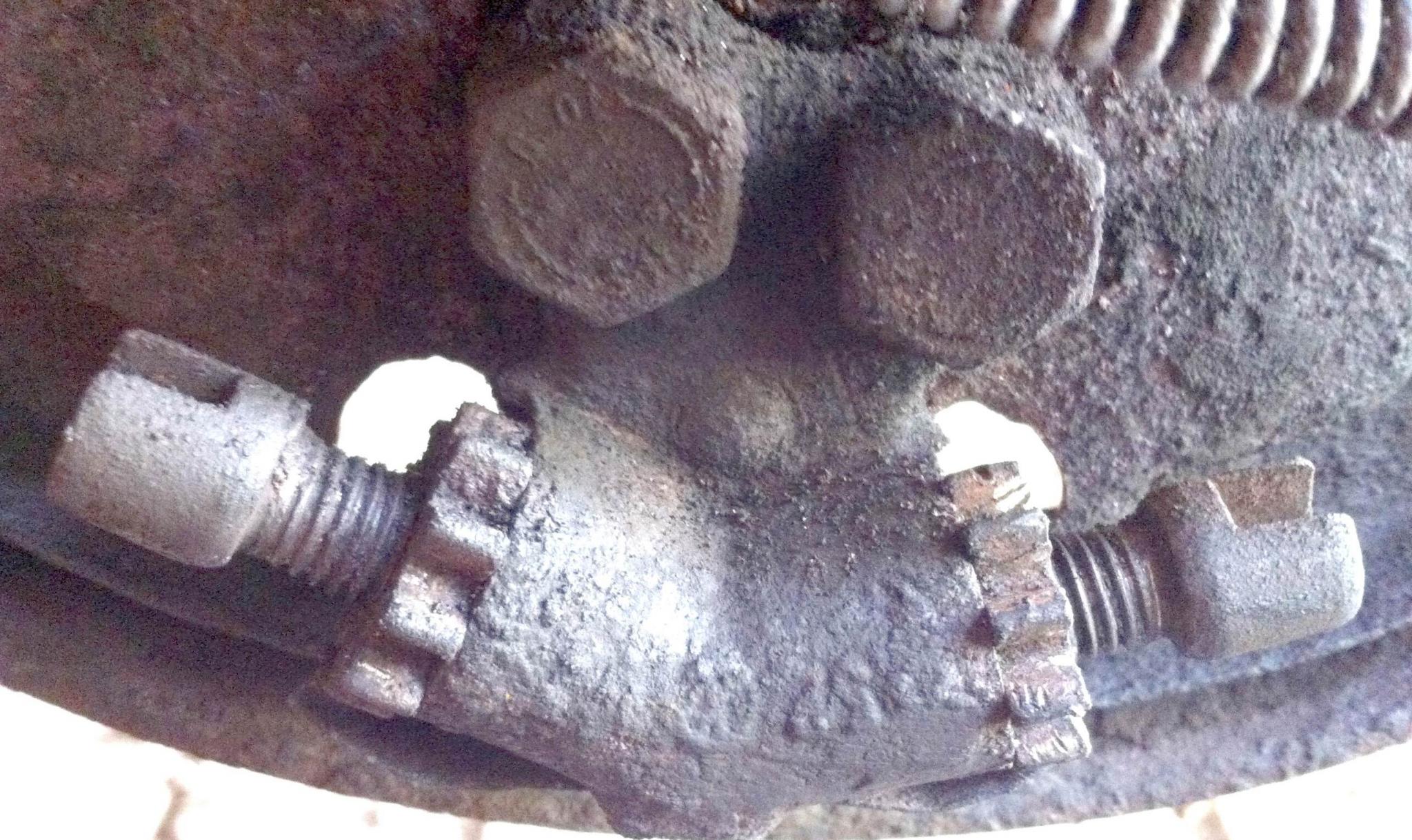 Beiden Vorgehensweisen gemein ist, dass irgendwann die Beläge zurück gestellt werden müssen. Nur dann kann man die Trommel abnehmen, bei gespreizten Belägen wird das nix, wenn die Trommel schon ein wenig eingelaufen ist und sich daher ein Rand gebildet hat. Also unter den Bus legen und die beiden unteren Stopfen für die Verstellung auf der Rückseite der Bremsankerbleche abnehmen. Jetzt die durch die Löcher erkennbaren „Zahnräder“ mit einem kleineren Schraubenzieher drehen, um die Beläge zurück zu stellen. Wer das noch nie gemacht hat, lese bitte weiter. Weiter unten erklärt sich das Prinzip der Zahnräder aus den Bildern und dem Text. Man muß das einmal „visualisiert“ haben, dann kapiert man das. Kindereinfach – nur total bescheuert, das zu beschreiben.