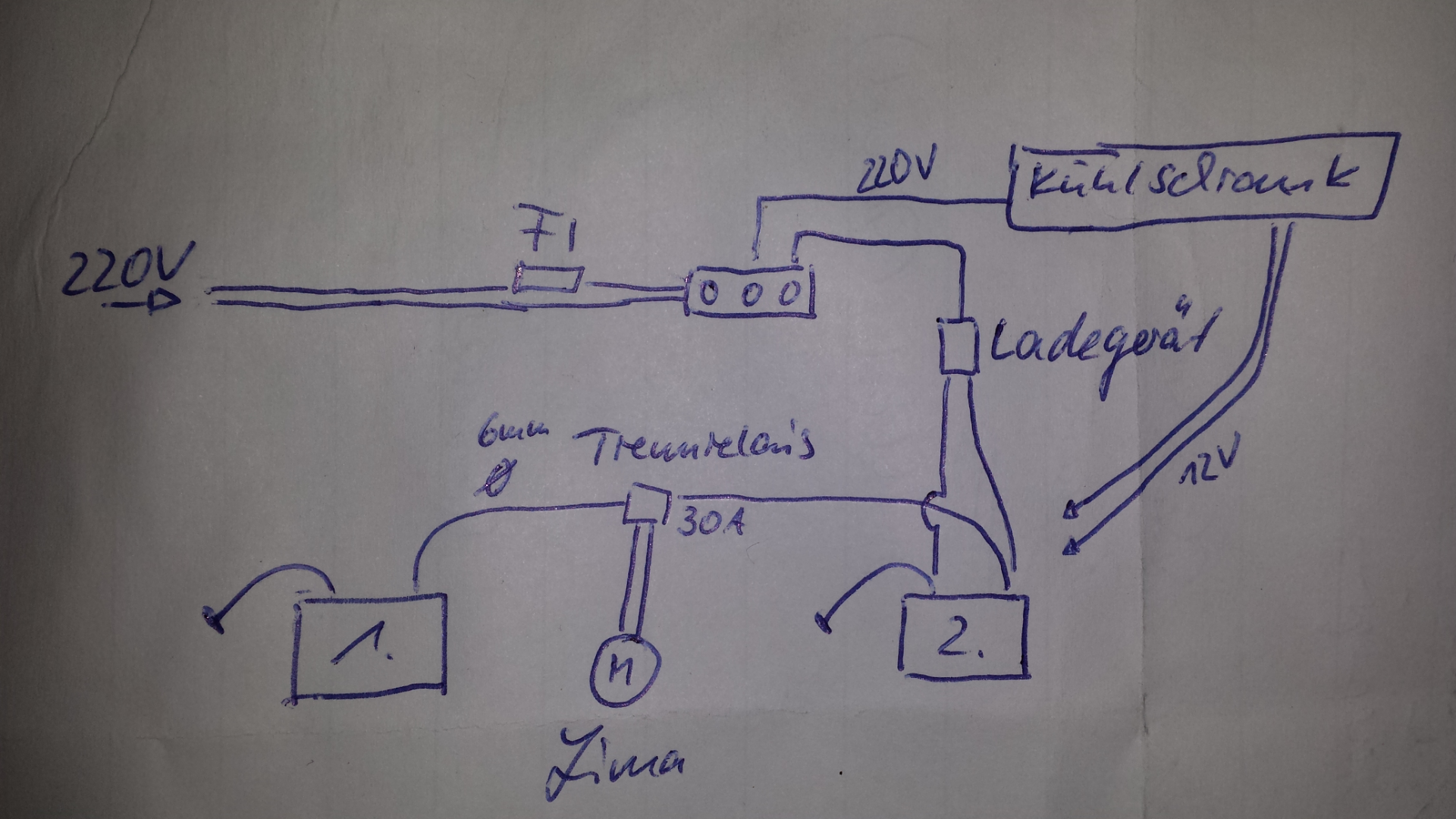 Da hab ich vorher den Rat auf 70A bekommen. VW verbaut hat aber von T3 bis T5 immer nur 30A verbaut. Reicht also auch. Das Kabel zur 2. Bat. ist n 6er.