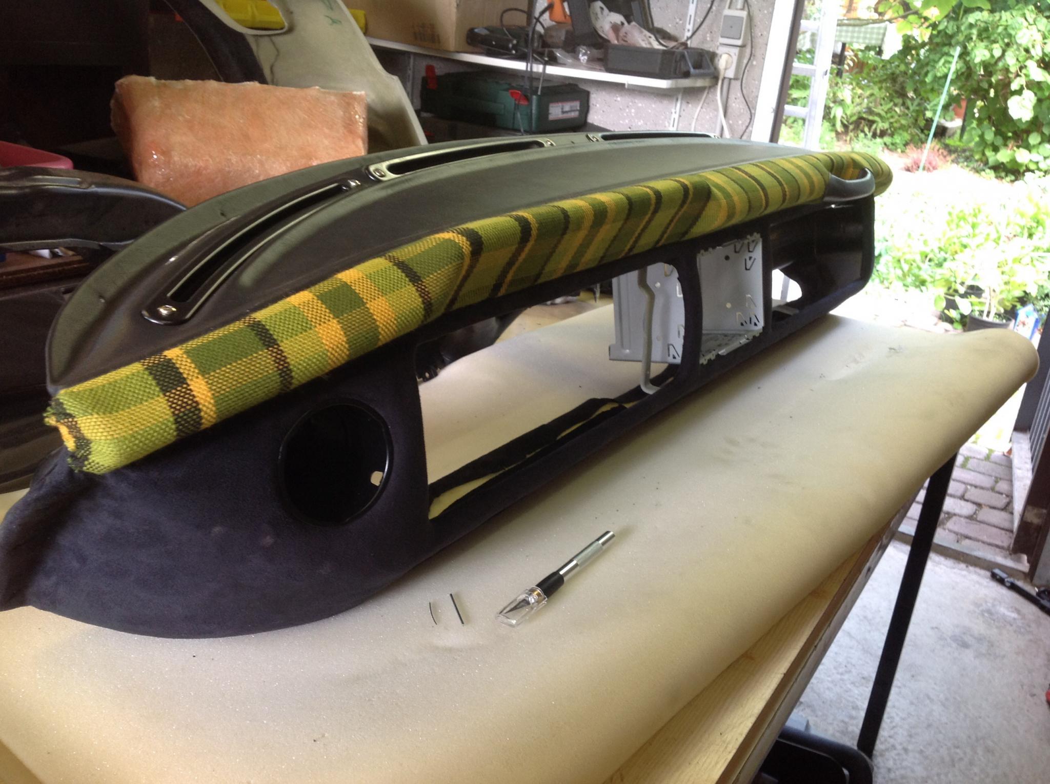 Langsam kommt dann unser neu bezogenes Armaurenbrett wieder rein. Allerdings müssen wir uns vorher über den Dachhimmel Gedanken machen. Hierzu komme ich dann mal im Technikforum.