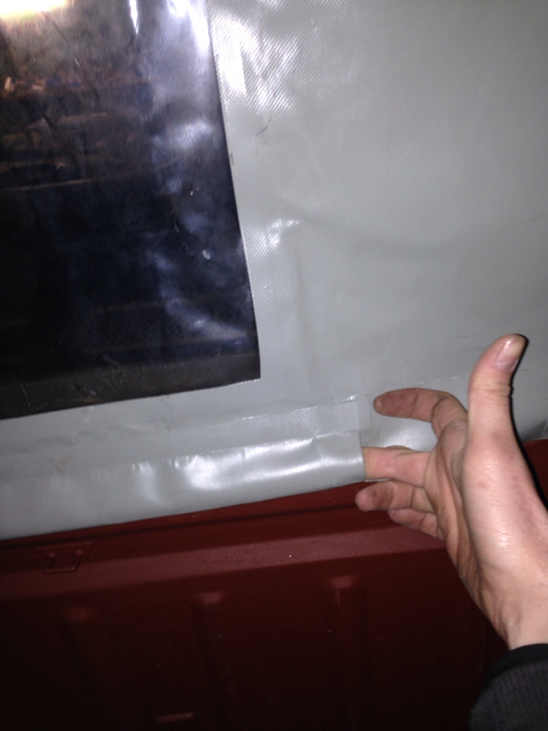 vielen Dank. Foto würde reichen. Es geht um die Stelle unterhalb des Heckfensters. Da ist so eine Rinne. Wie die Plane dort befestigt ist.