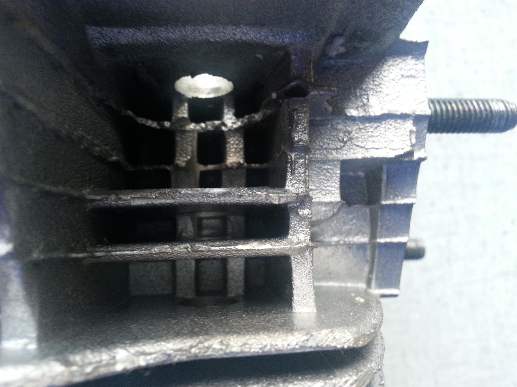 Ich wollte jetzt zumindest die Durchbrüche zwischen den Ansaug- und Abgaskanälen wieder herstellen, den Abgaskanal im Bereich der Dichtung soweit es geht wieder herstellen und die Kühlrippen dünner schleifen, so dass der Luftdurchsatz verbessert wird. Könnte mir auch vorstellen, dass sich solche engen Zwischenräume zwischen den Rippen sehr leicht mit Schmutzpartikeln zusetzen und die Kühlung noch mehr verschlechtern.
