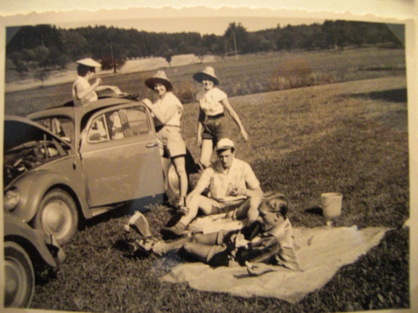 Für die Goldene Hochzeit meiner Eltern habe ich die alten Fotoalben durchforstet und siehe da, in den 50ern fuhr die Jugend Käfer und Bus (was anderes war ja nicht verfügbar). Eine der feschen Mädels ist meine Mama, leider ist keiner der VWs in der Familie geblieben :cry: