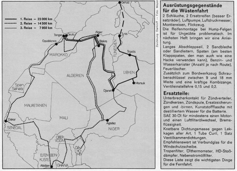 "Man läßt vor der Reise die Hinterachs-Federstäbe um etwa 40 cm höher einstellen