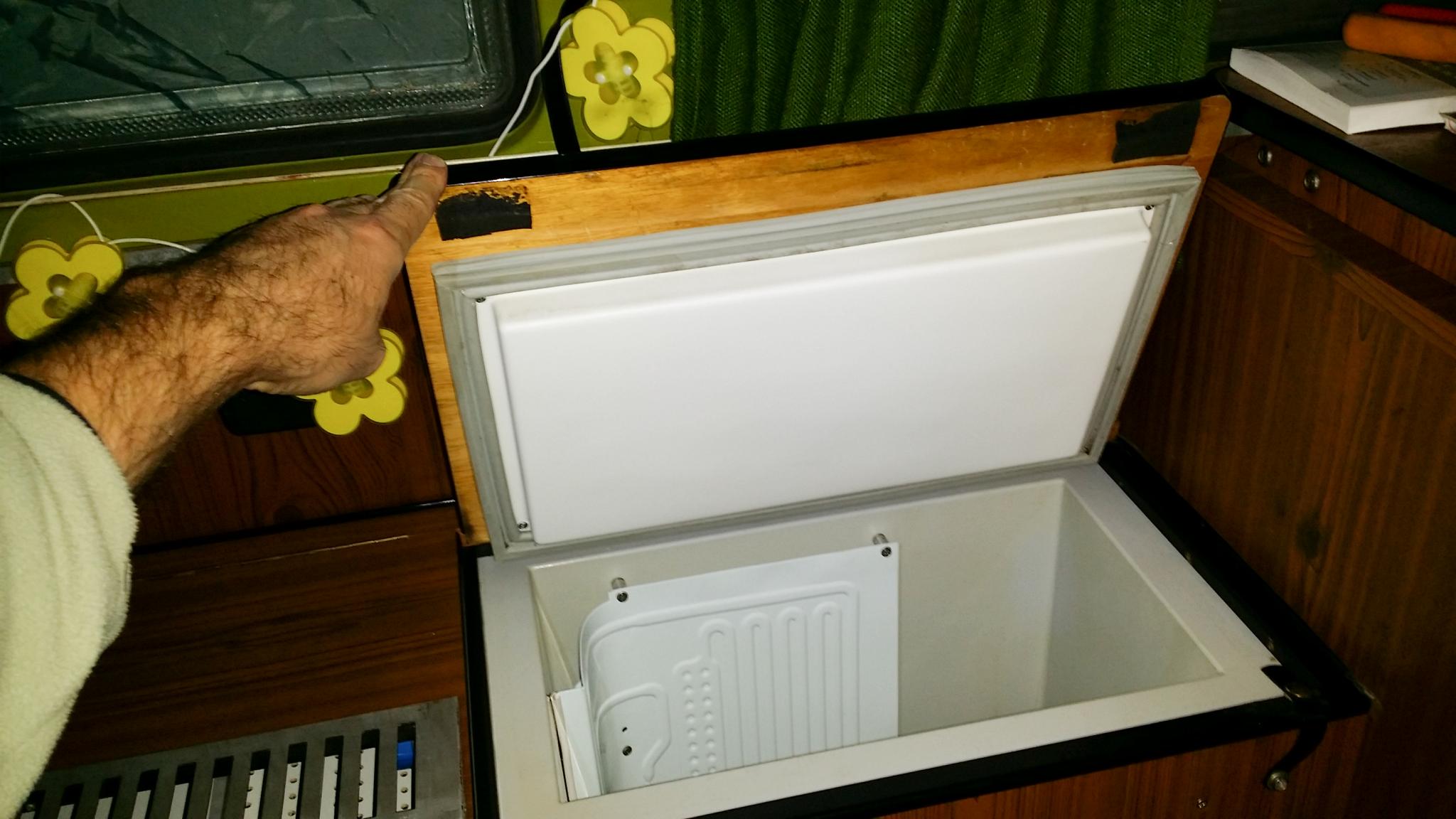 Kühlschrank im T2 Berlin umgebaut. Originalaggregat gegen Waeco getauscht.